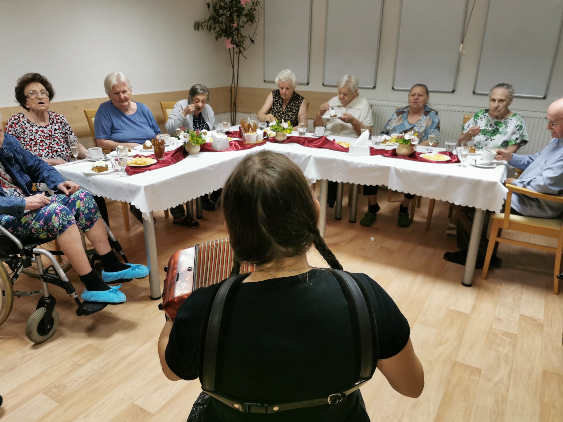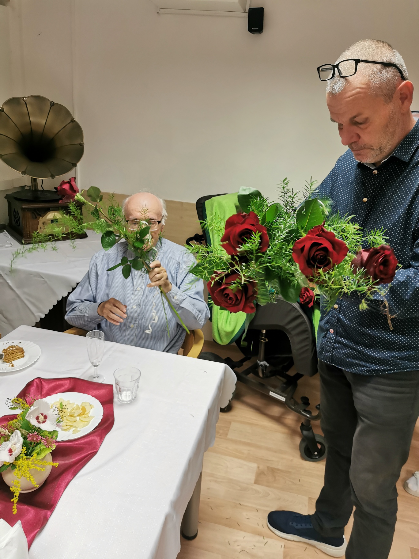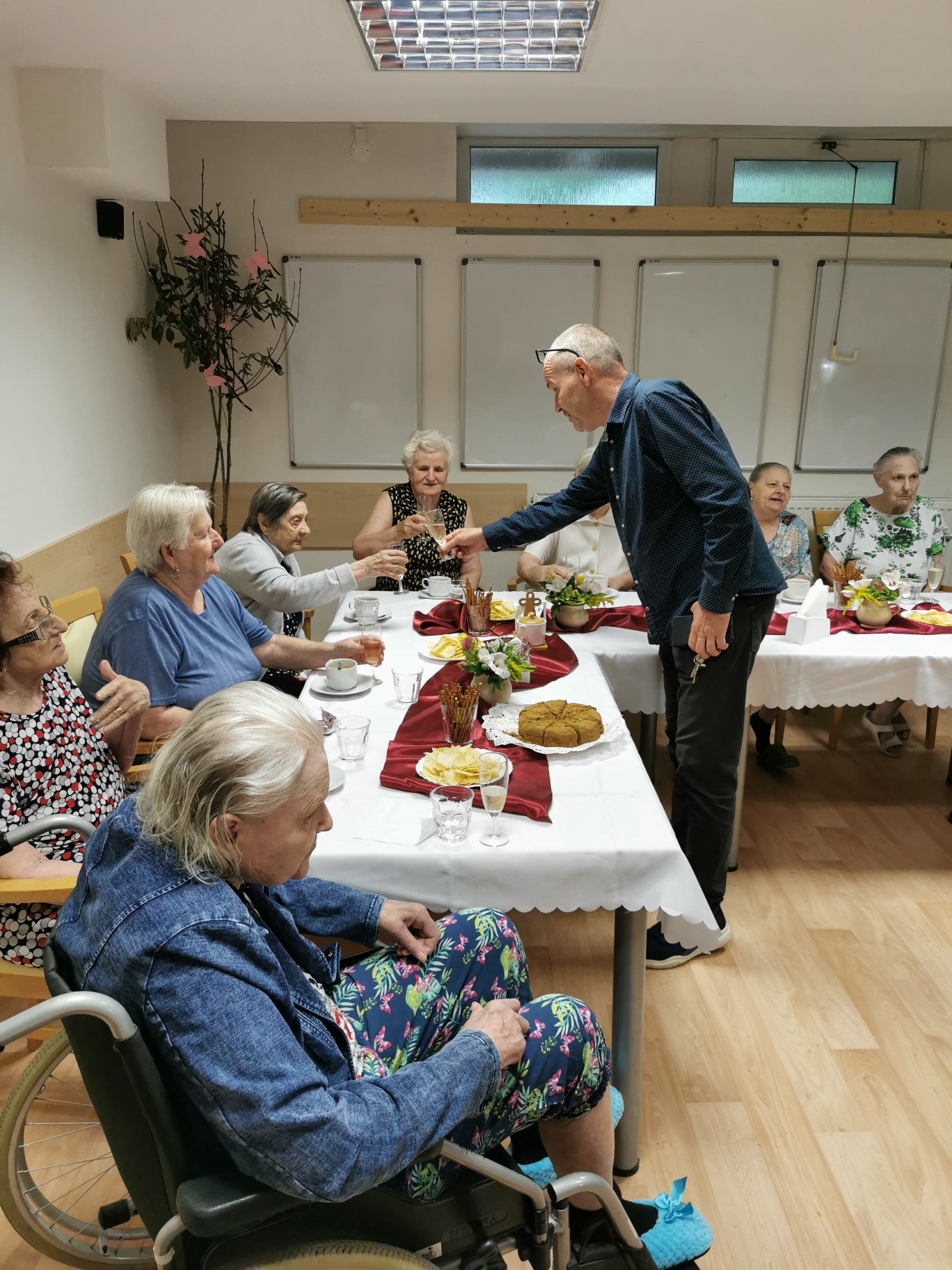 Uběhlo pár měsíců a nám přibyli další jubilanti. 30. 8 . jsme se sešli, řádně vše oslavili a společně si zazpívali v doprovodu harmoniky. Nechybělo šampaňské, dort ani kytička.