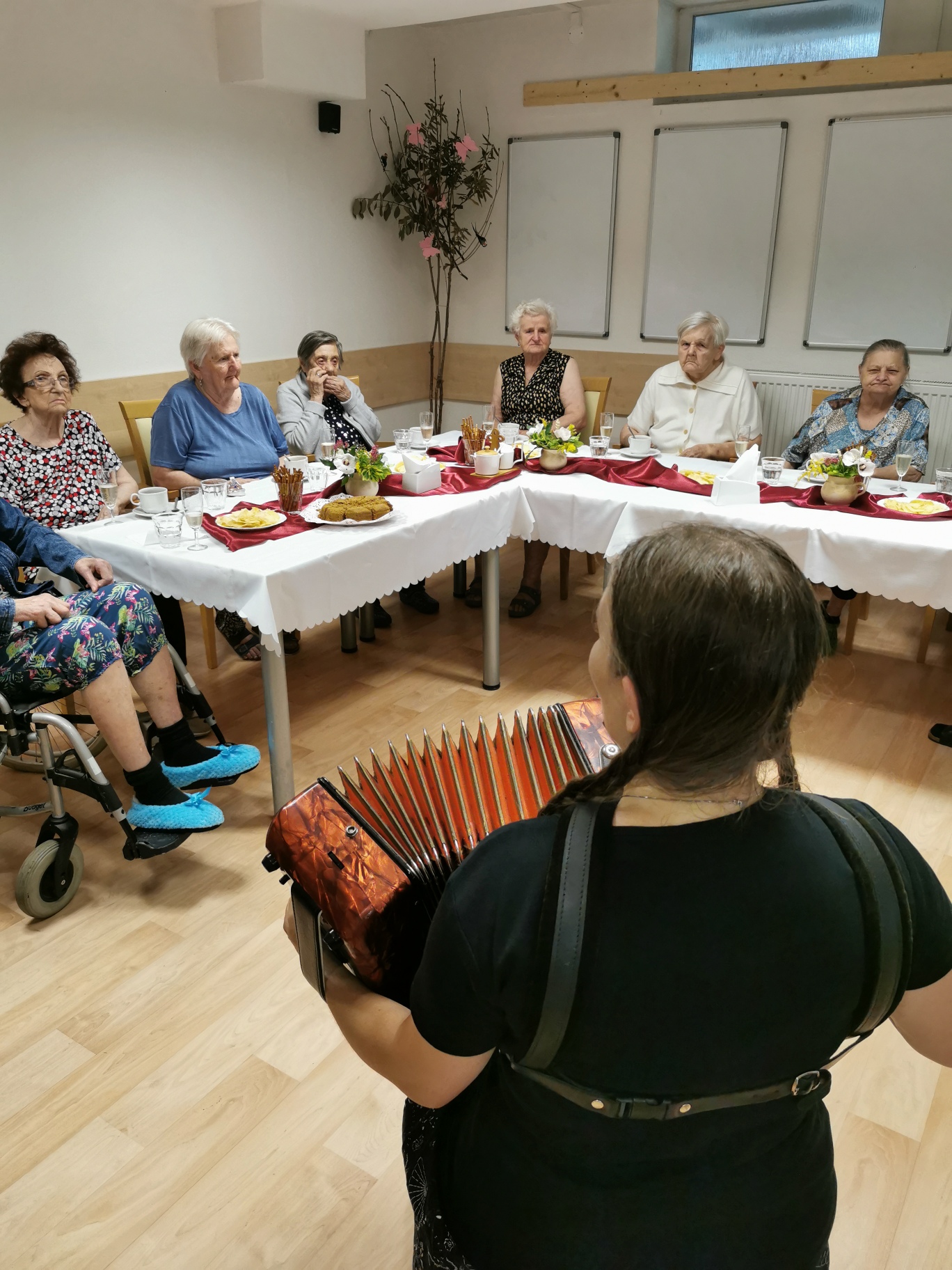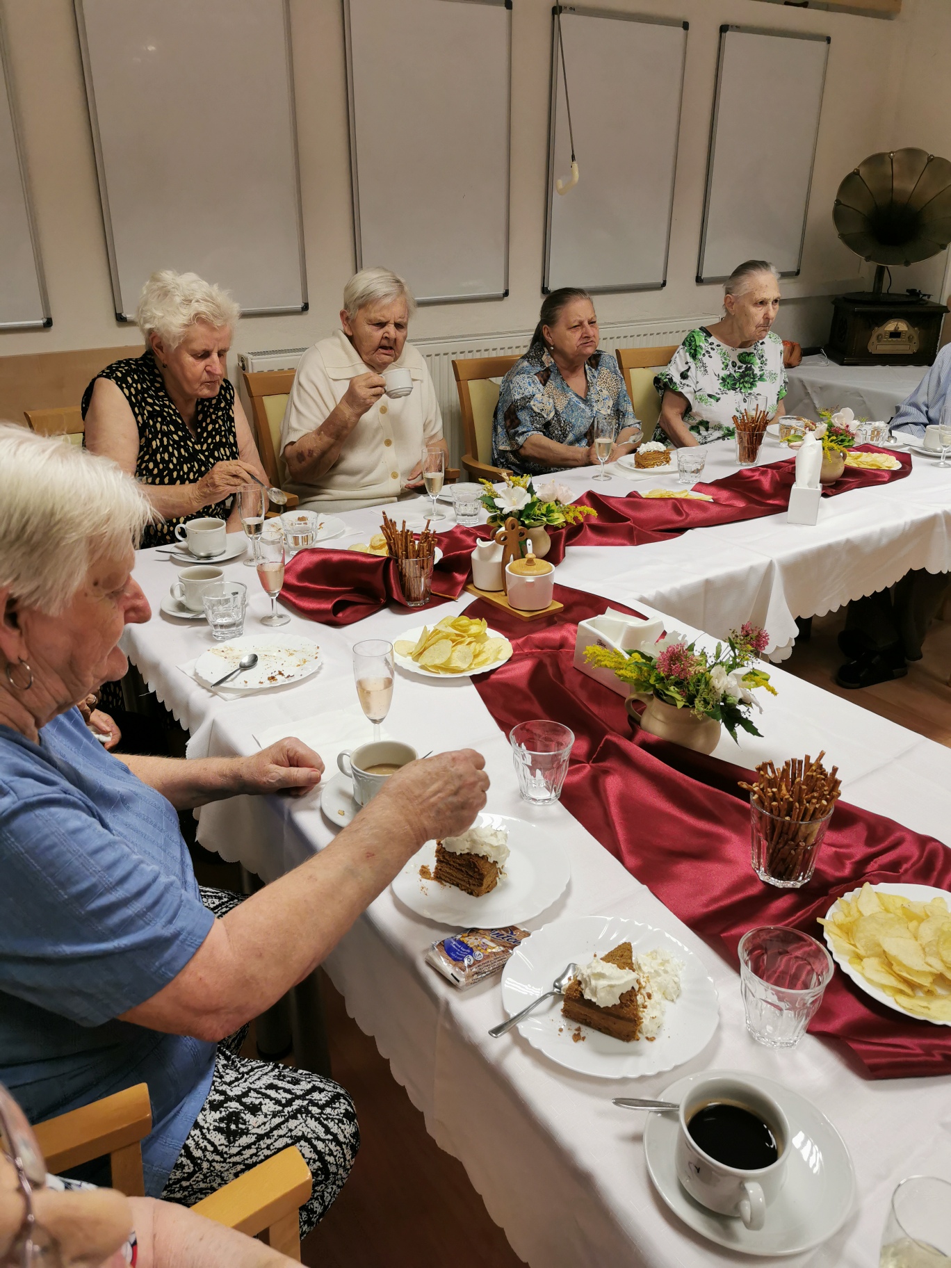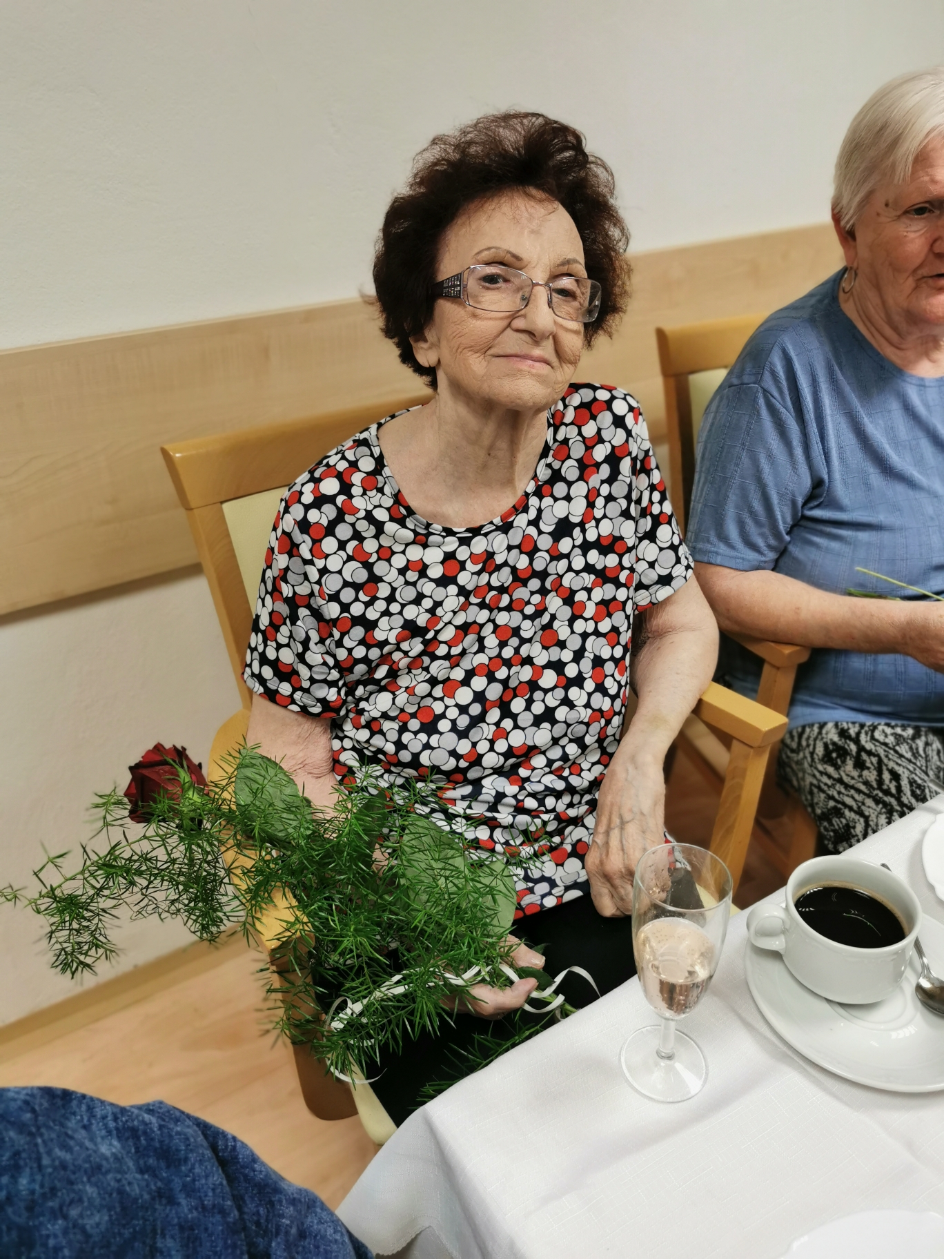 Uběhlo pár měsíců a nám přibyli další jubilanti. 30. 8 . jsme se sešli, řádně vše oslavili a společně si zazpívali v doprovodu harmoniky. Nechybělo šampaňské, dort ani kytička.