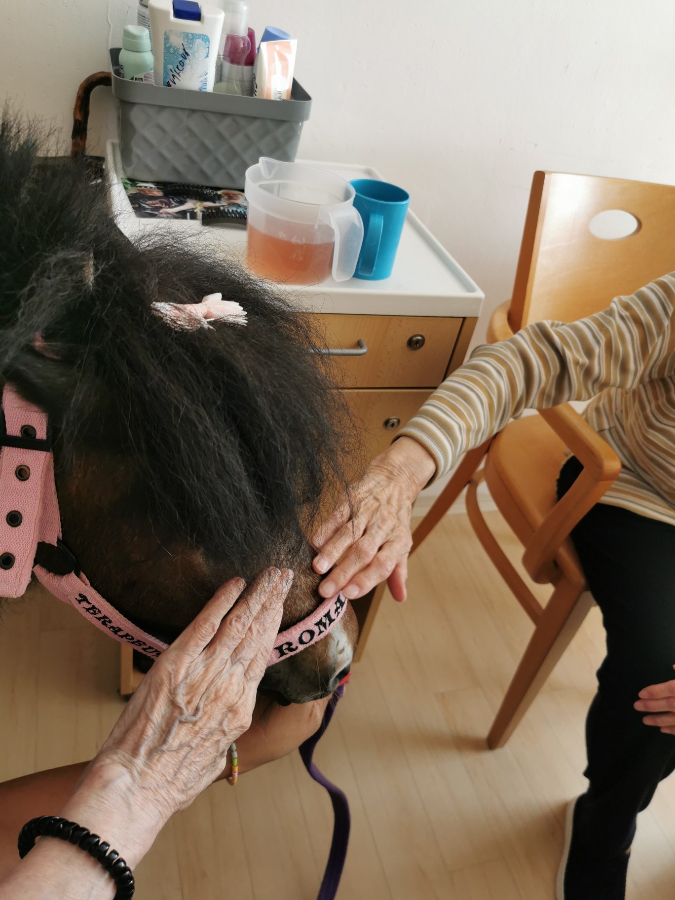 Dne 28.6. 2023 proběhla první návštěva koníka (a dvou králíků) u lůžek klientů na 1. oddělení našeho domova.