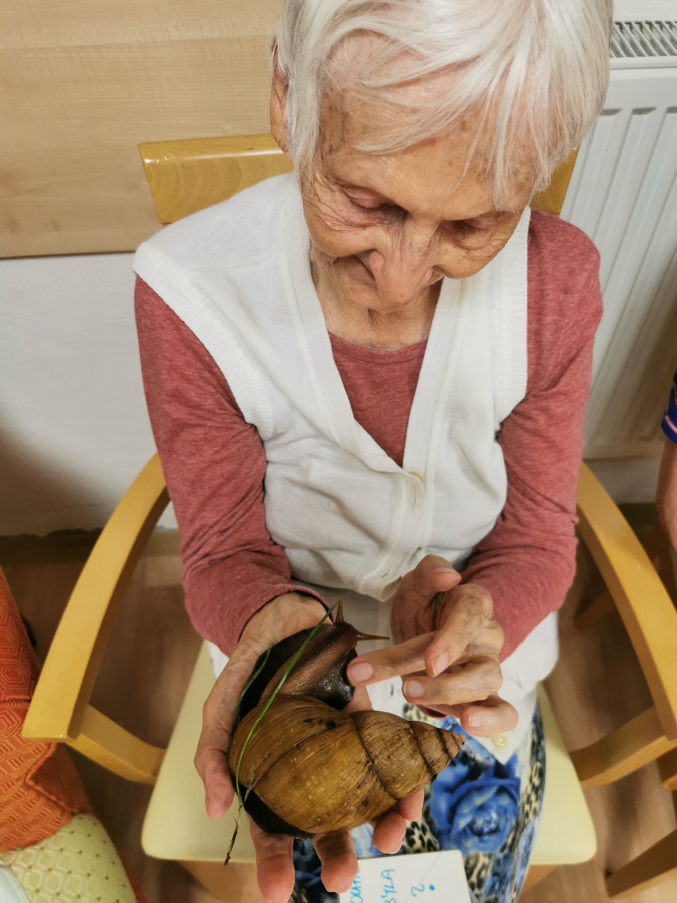 Dnes 9.8.2023 jsme pro naše klienty připravili aktivizační skupinu, jejíž hlavní náplní byl poník Romana, králíci a nově i šneci paní Veroniky z nadace EMIL POMÁHÁ. To vše zaštítěné nadací Ježíškova vnoučata.