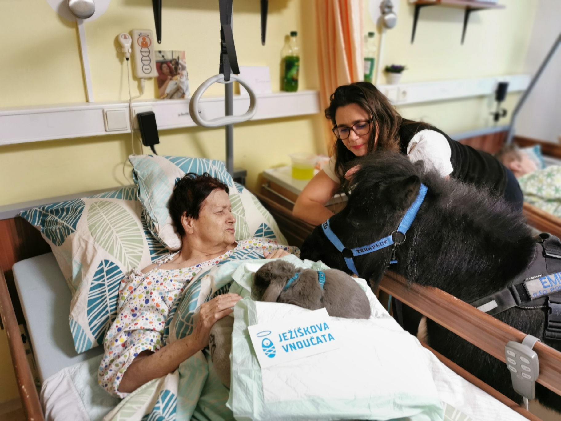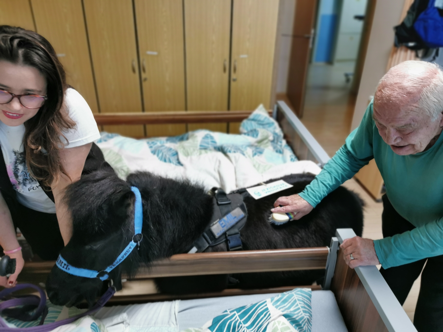 Dne 22.11.2023 nás navštívila paní Veronika s Poníkem Emilem v rámci projektu Ježíškova vnoučata. Paní Veronika si spolu s Emilem ještě dovedla další posilu – krásného, chlupatého, zakrslého králíčka Edu. Edík byl zachráněn pejskem, který ho nalezl v širém poli. A tak se stal další posilou do Veroničina týmu. Byli jsme moc rádi, Edík byl velice hodný, když ho klienti hladili.