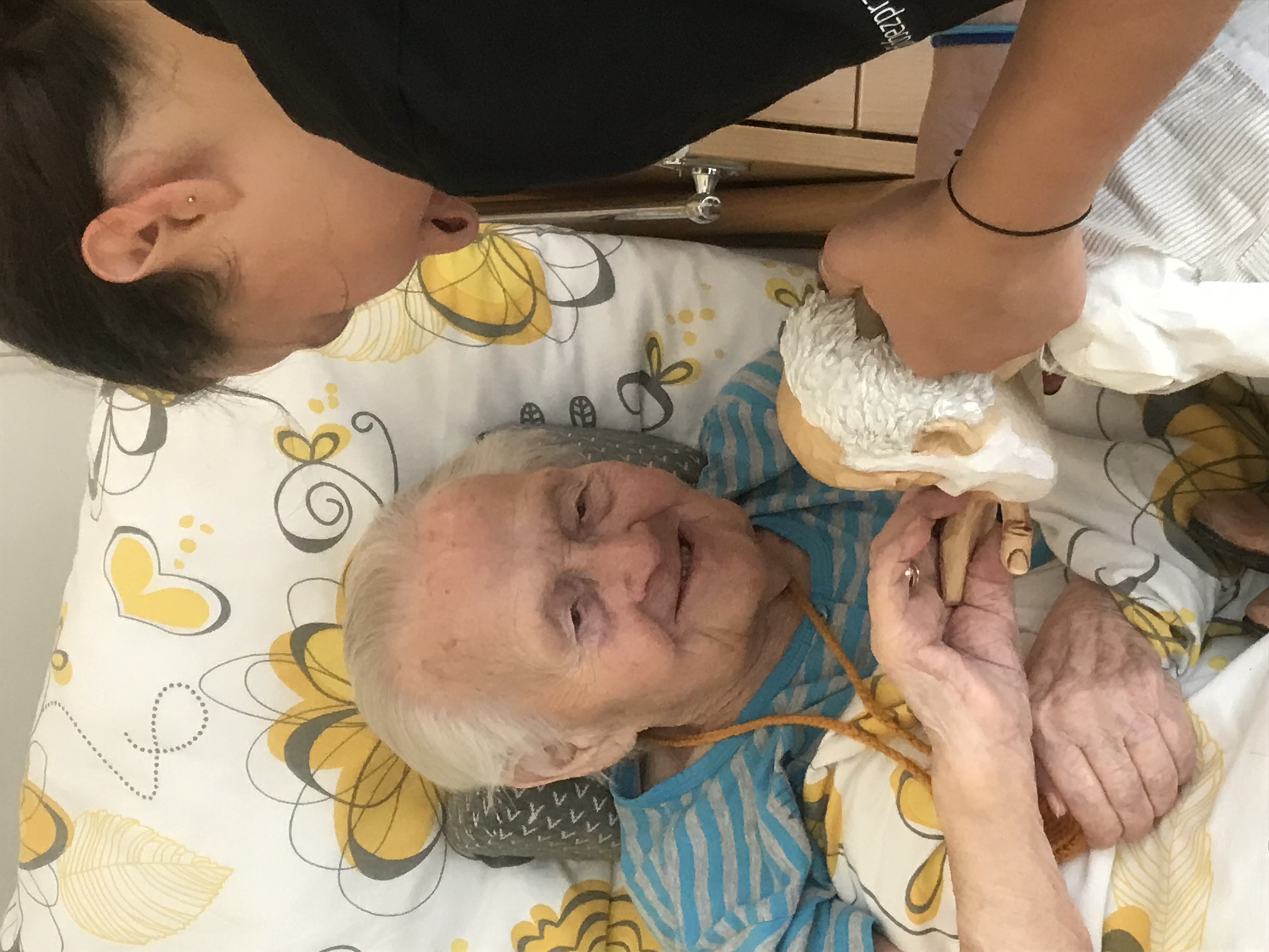 Děda František se představil i svého psa Raťafáka a povídal si s našimi klienty o běžných životních událostech.