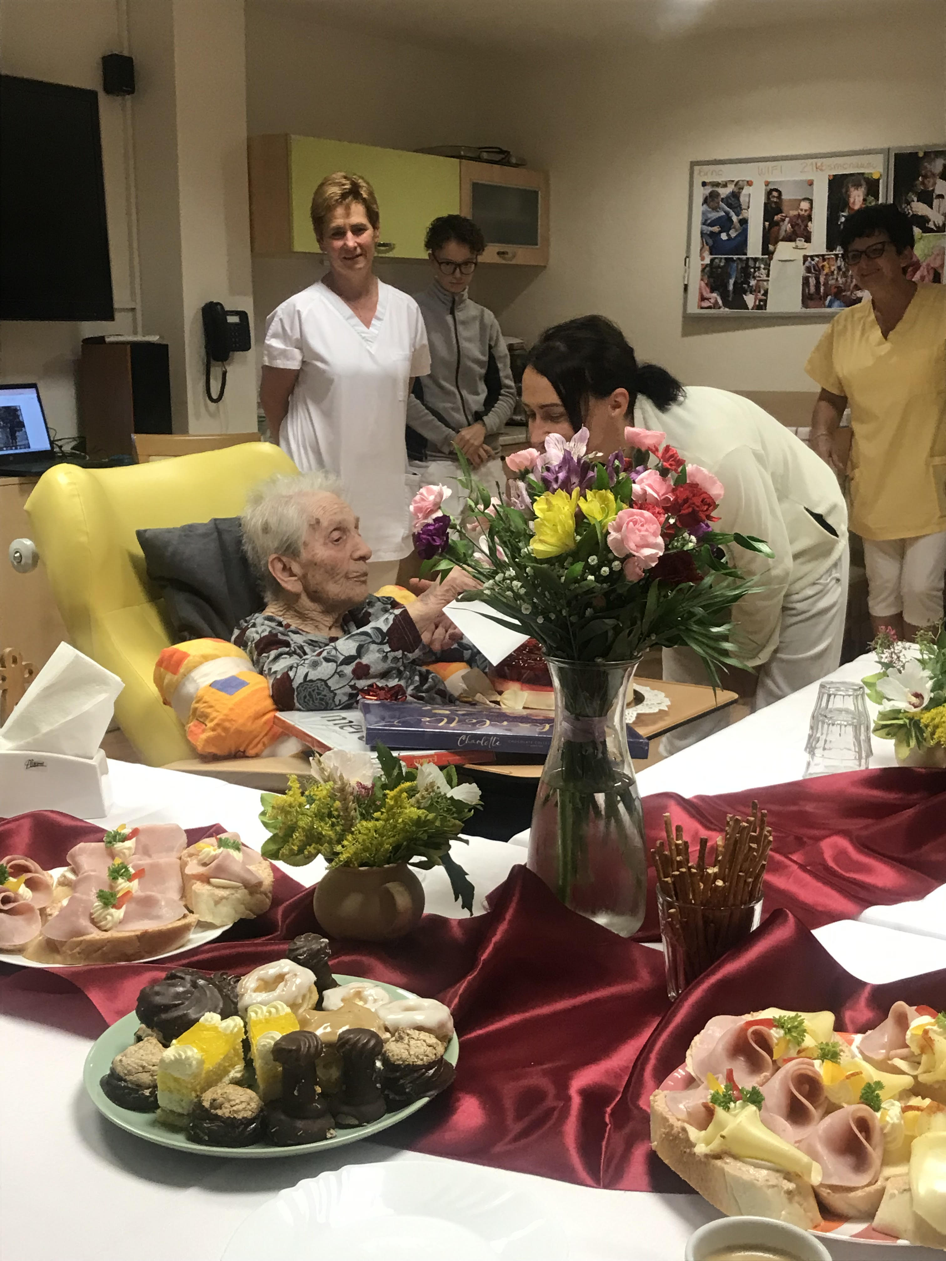 Na konci léta jsme oslavili další významné jubileum-100 let naší klientky. Spolu s její rodinou a zástupci města Brna jsme uspořádali oslavu, která klientku překvapila a vykouzlila úsměv na tváři.