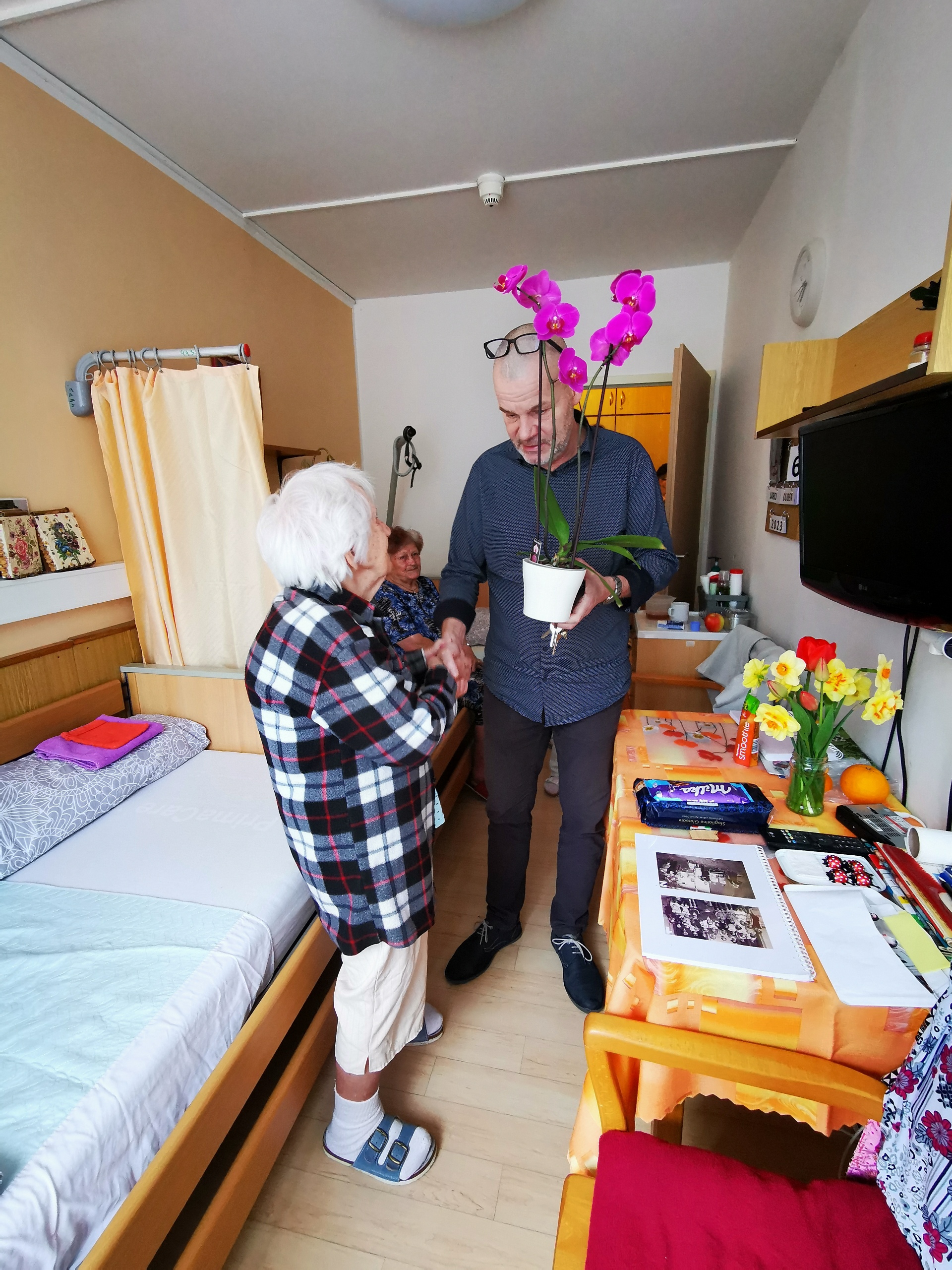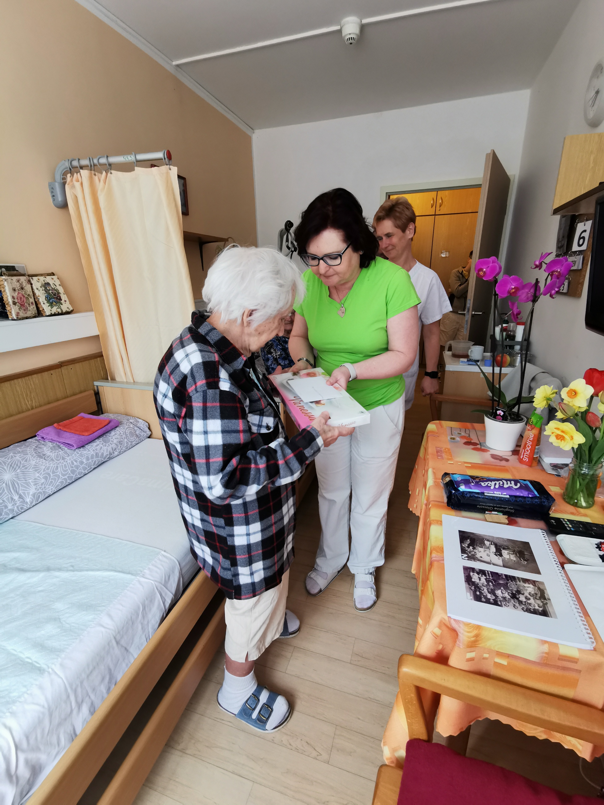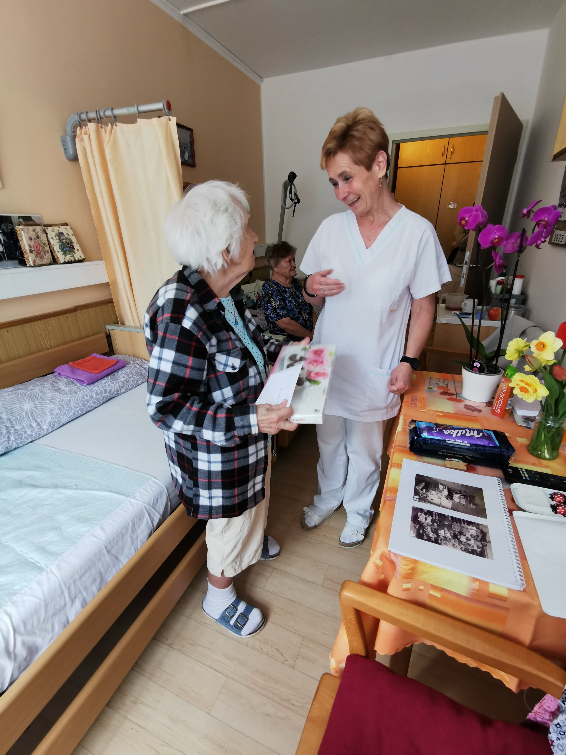 Dne 26.4.2023 oslavila naše klientka již 102. narozeniny. Gratulanty přivítala jako vždy s úsměvem, společně zavzpomínala na mládí a drobné dárky a květiny ji udělaly radost.