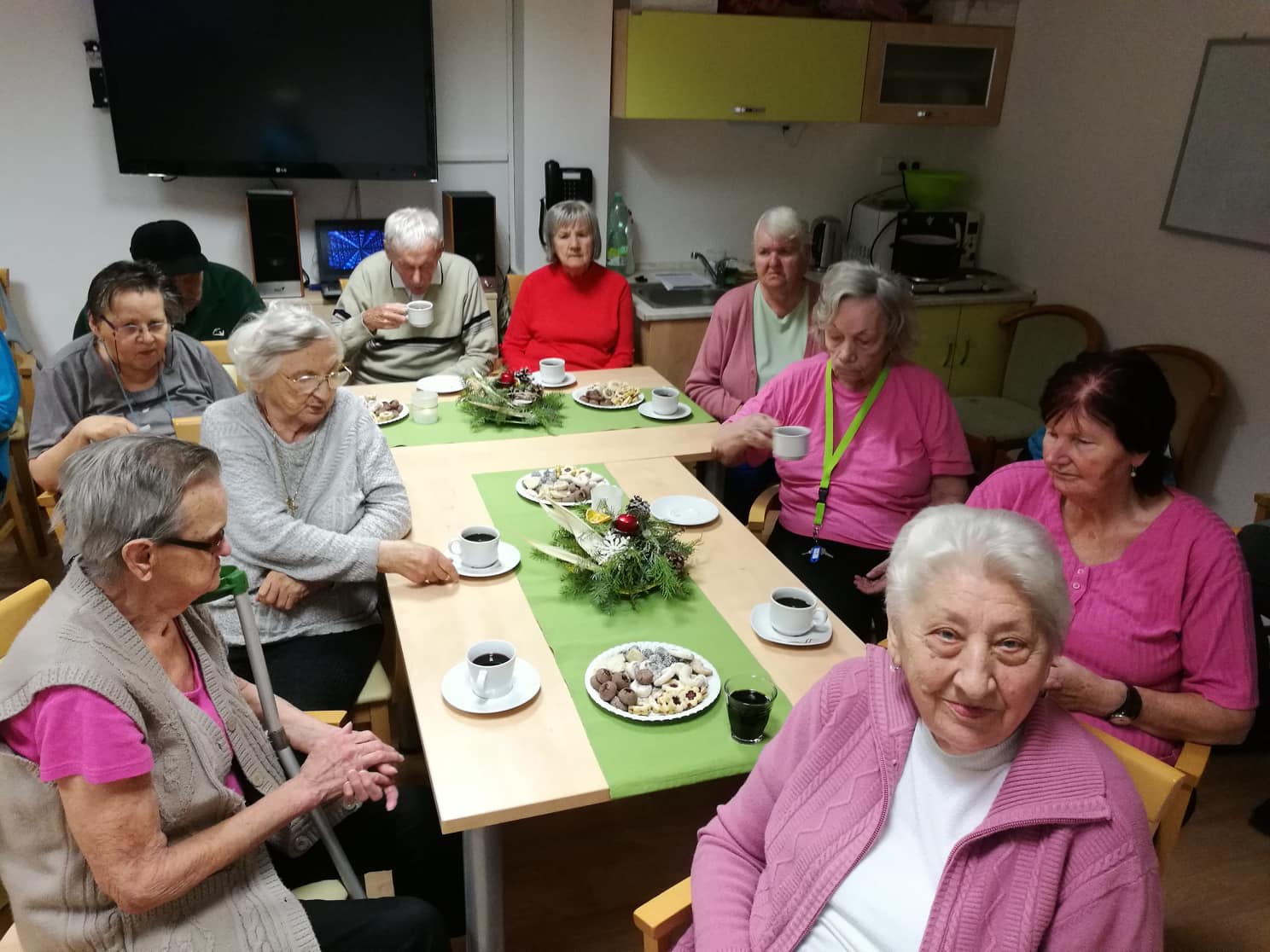 Na příchod Vánoc jsme se připravovali na společných posezeních, kde jsme klientům promítali adventní prezentace a společně jsme se do vánočních svátků prozpívali koledami.