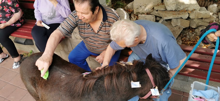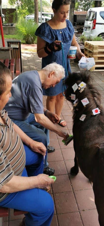 Emila i staršího poníka Romanu mohli klienti hřebelcovat, hladit a dozvěděli se opět něco více o životě poníků.