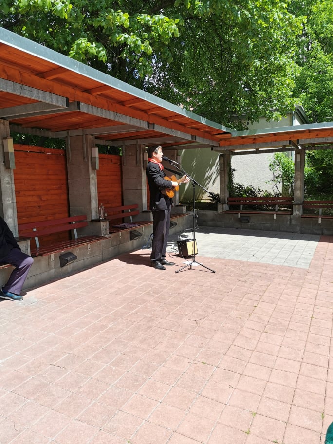 Ve středu 26.5.2021 proběhlo hudební vystoupení pana Vladimíra Pecháčka, dloholetého bývalého člena legendární skupiny Patrola Šlapeto a orchestru Ondřeje Havelky. Za doprovodu kytary zazpíval písně staropražské, lidové i populární hity Karla Hašlera a známé melodie z filmu pro pamětníky.