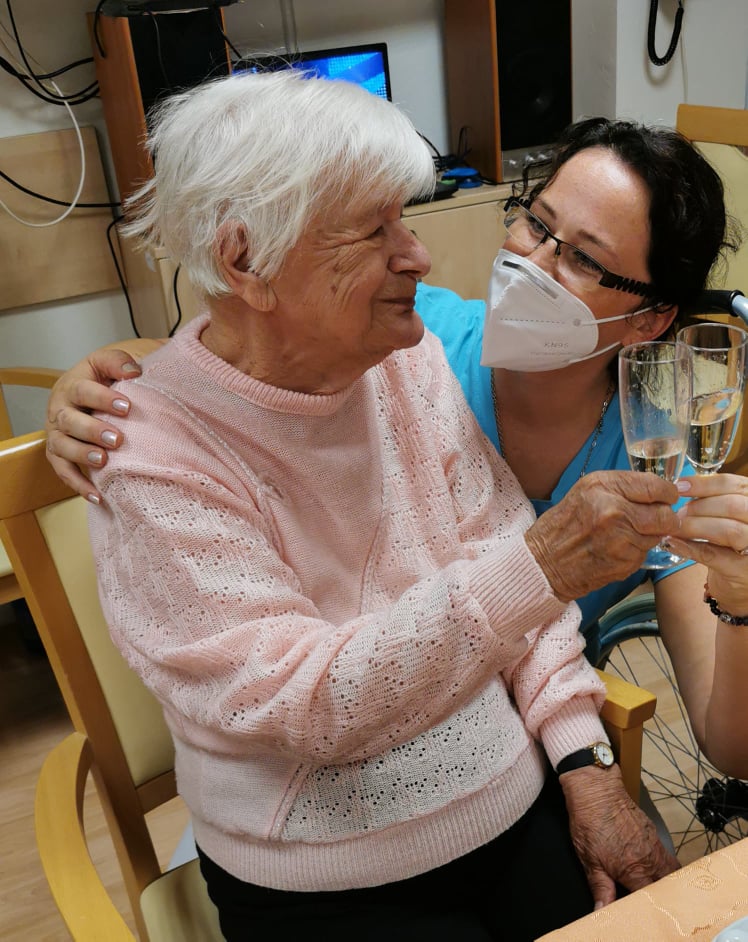 Květinou obdařené oslavenkyně si popovídaly společně u kávy a sklenky šampaňského, společně si zazpívaly a nakonec i zatancovaly. Největším dárkem pro všechny zúčastněné byla dobrá nálada a úsměvy na tvářích.