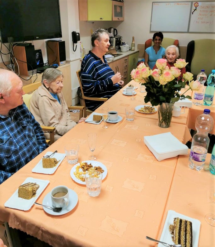 V pátek 8.4.2022 se v našem domově konala oslava čtvrtletních narozenin klientů. S přípitkem, u dortu a malého občerstvení jsme si zazpívali a někteří zatancovali.