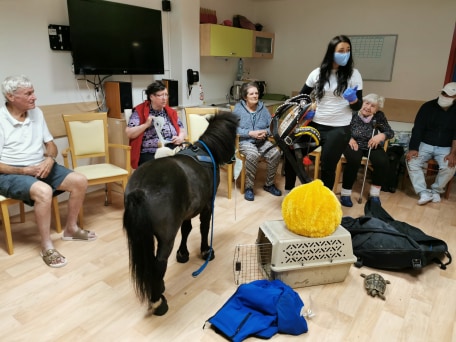 Dne 26.5.2020 jsme se opět setkali s poníkem Emilem a jeho majitelkou Veronikou, která nám připomněla jeho původ, starost a péči o něj. Klienti měli možnost si poníka pohladit či ošetřit srst kartáčem a hřebínkem. Naši klienti jsou z této návštěvy vždy velice nadšeni a užijí si ji.