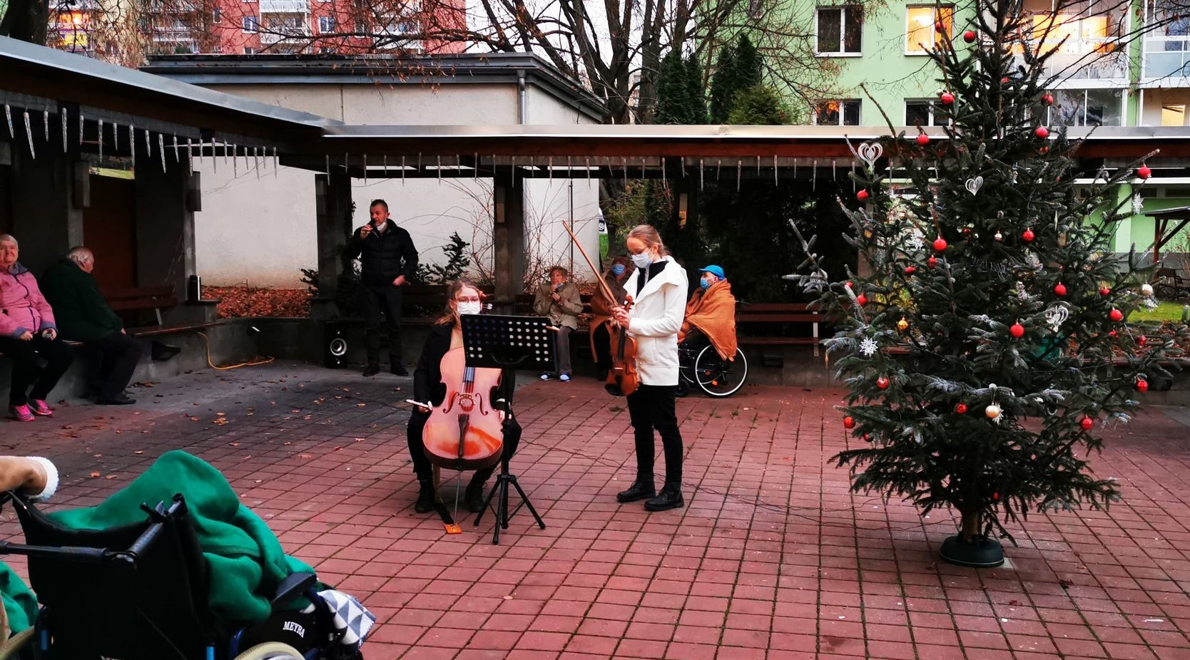 I když epidemiologická situace ještě nedovolovala schromáždění klientů na nádvoří, chtěli jsme alespoň trochu přenést vánoční atmosféry ke klientům a zahájit tak dobu adventu. Většina klientů sledovalo program z balkónů či oken, někteří se zúčastnili progamu přímo na nádvoří.