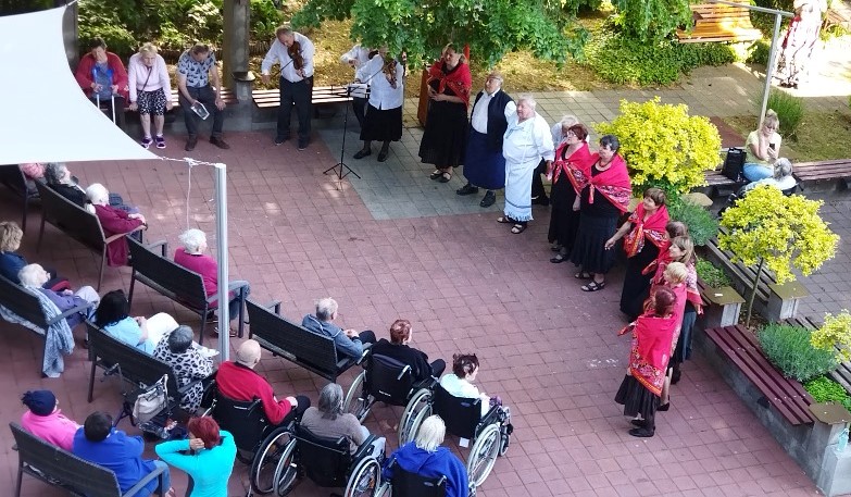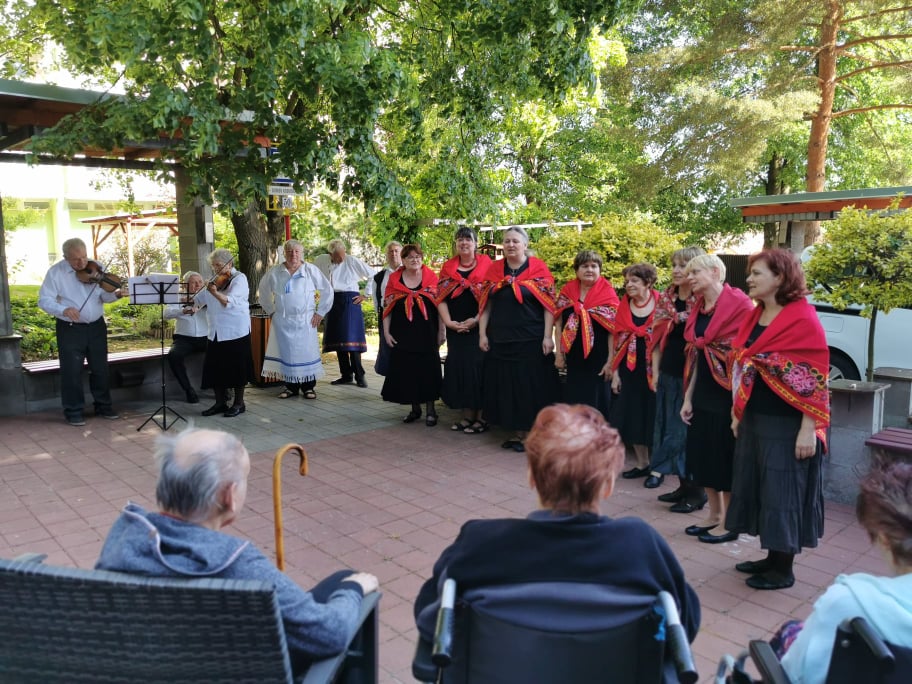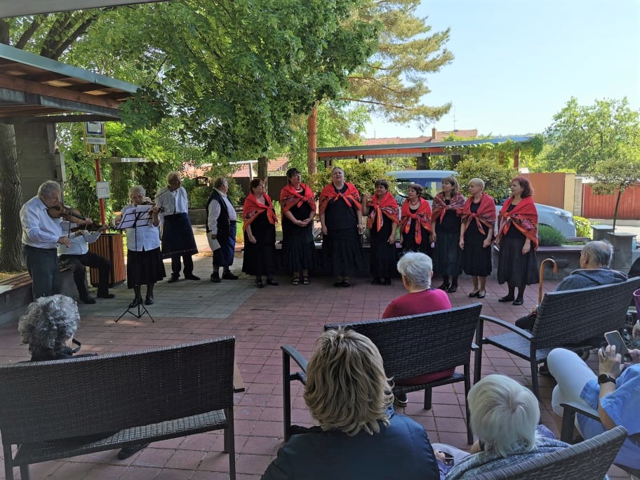 Dne 19.5.2022 nás po delší pauze navštívil hudební soubor „SBOREČEK“. V zahradě domova za krásného počasí jsme si nejen poslechli, ale i společně zazpívali lidové písničky.