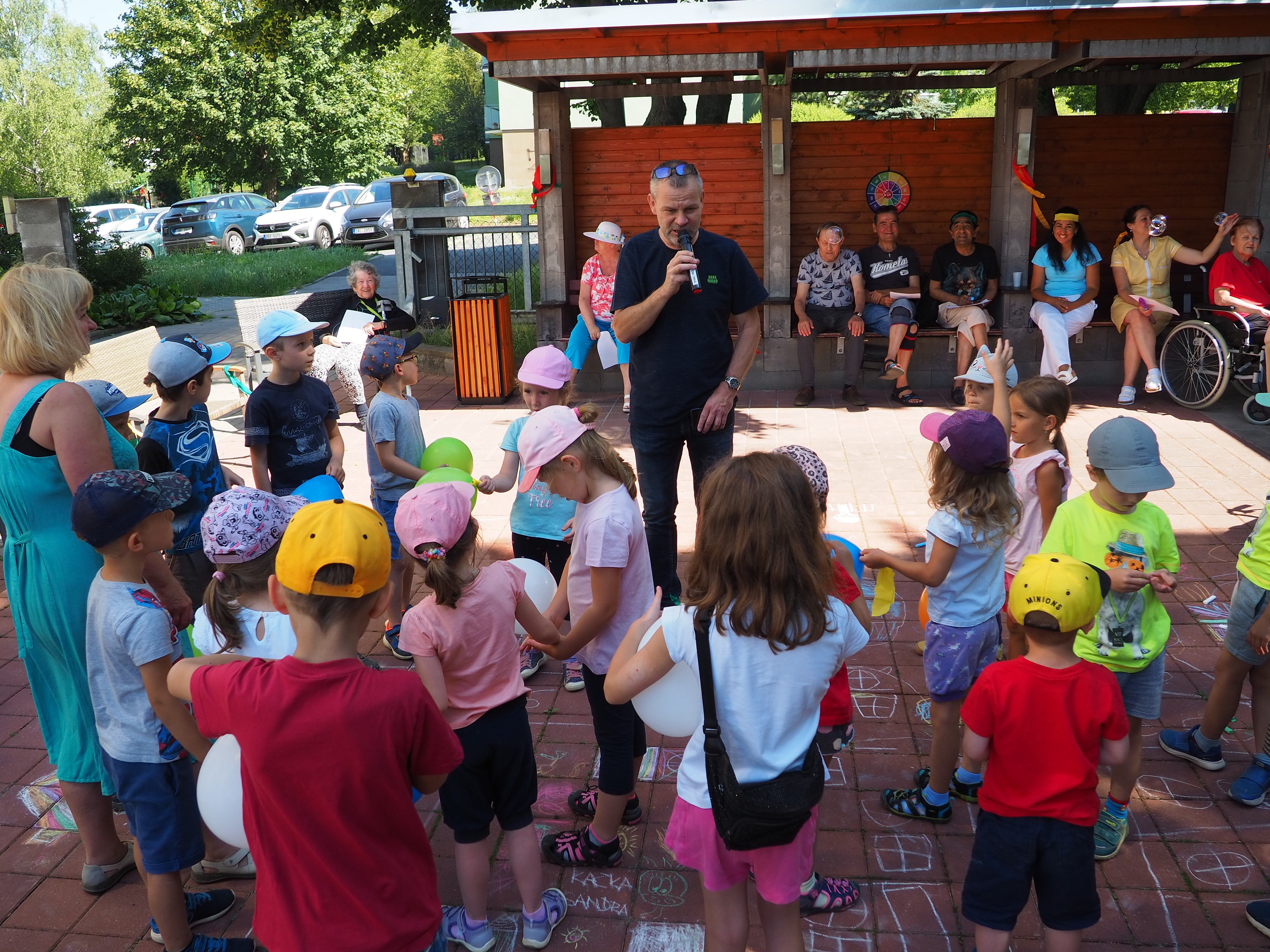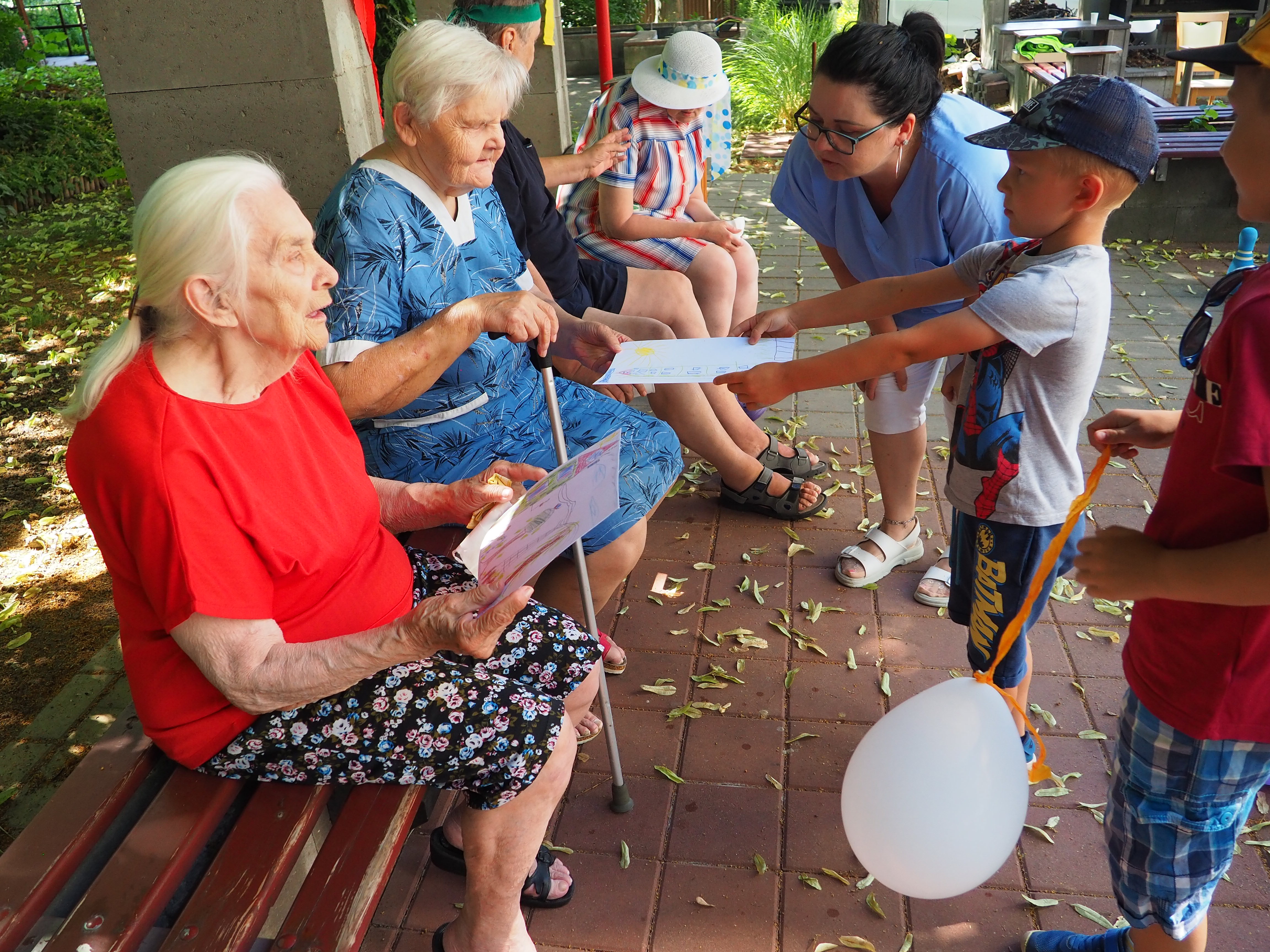 Dne 23.6.2022 se poprvé v historii našeho domova setkaly děti z MŠ a naši senioři, aby strávili společné dopoledne, naplněné zábavou a sportem. Soutěžili v osmi disciplínách. Děti naše klienty potěšily nejen svojí přítomností, ale i nakreslenými obrázky a písničkou. My jsme děti obdarovali sladkou odměnou.