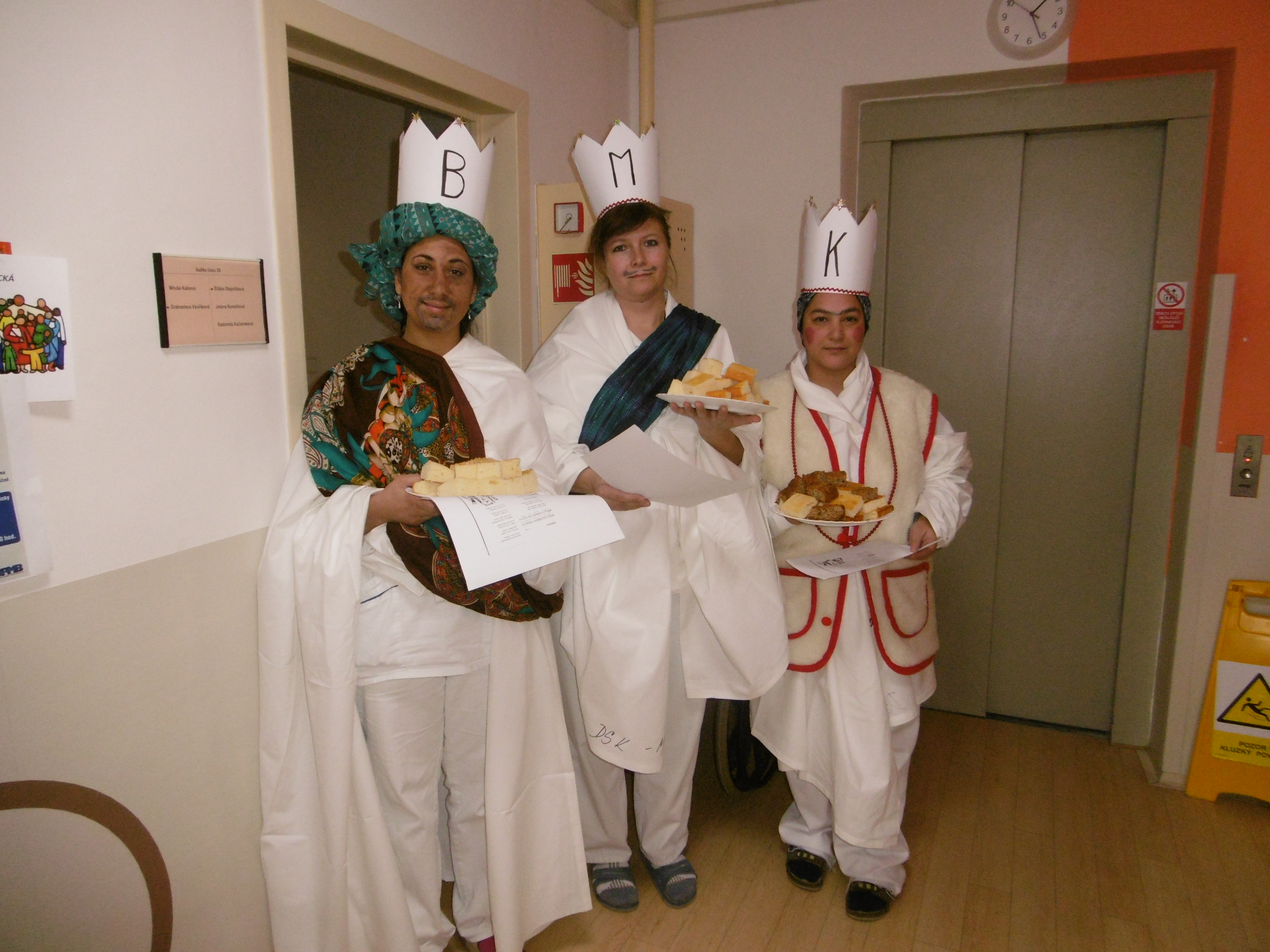 V pátek 6. ledna nás v našem domově navštívili mudrci z Východu, tradičně označování jako "Tři Králové" - Kašpar, Melichar a Baltazar. Naši zaměstnanci z jednotlivých oddělení se v tento den proměnily ve "Tři Krále" a pro naše klienty si připravili bohatý program s občerstvením a každý klient dostal i sladké překvapení.