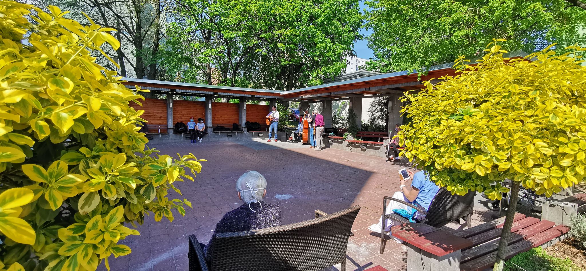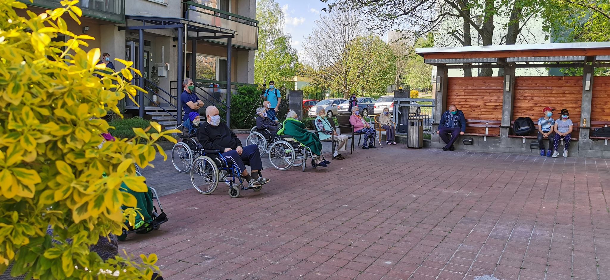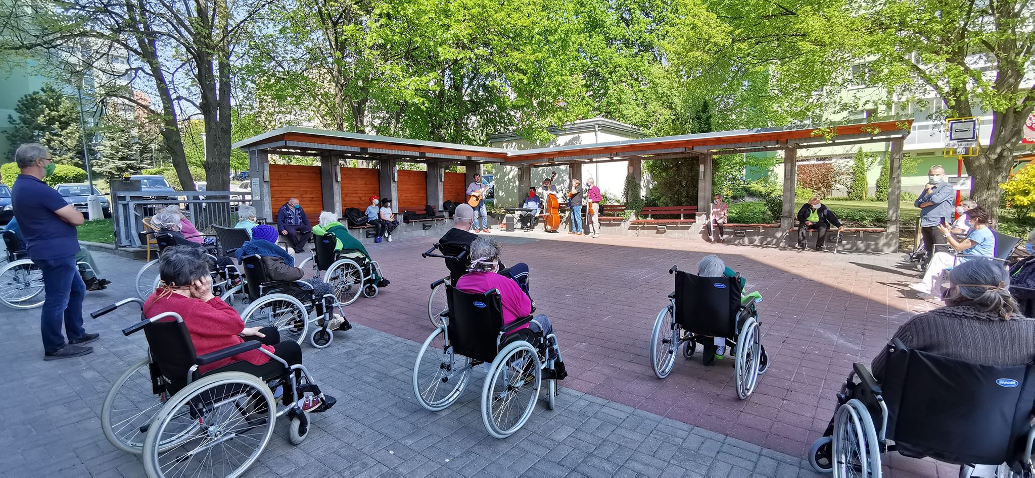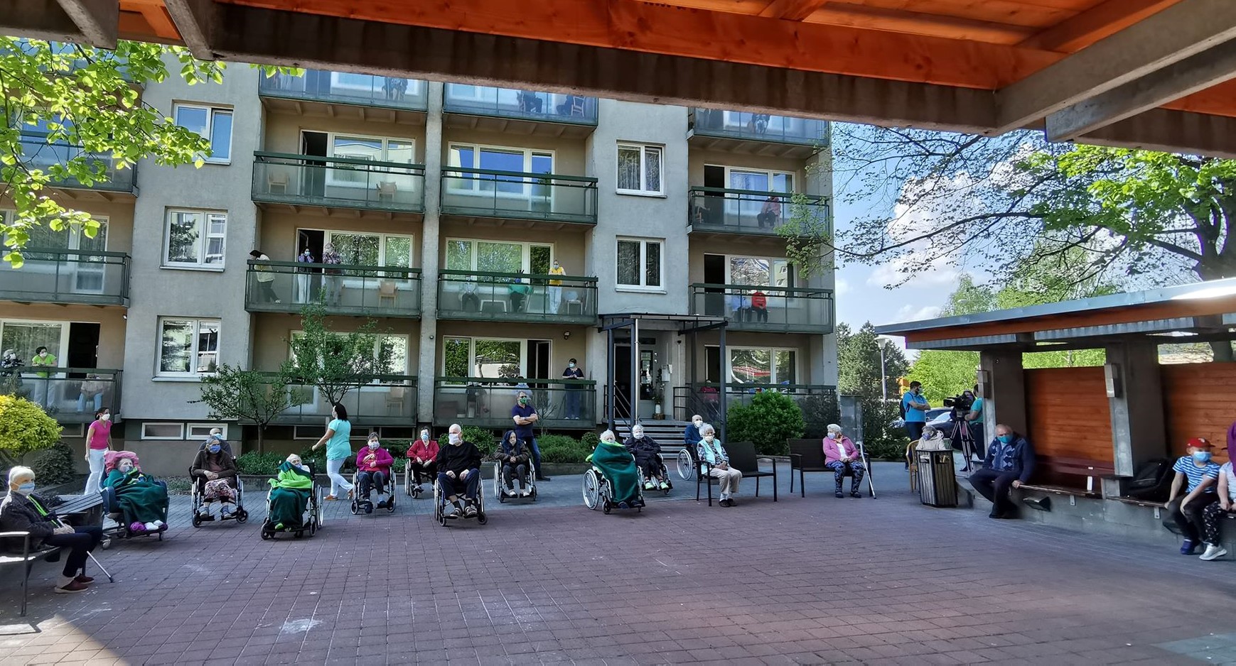 Dne 28.4.2020 navštívila naše klienty hudební skupina "Vinařští romantici" v čele se Zdeňkem Junákem, který naše klienty potěšil svým charismatickým hlasem v písních různých žánrů. Část klientů se shromáždila na zahradě domova a ostatní sledovali vystoupení z balkónů domova. Vystoupení bylo klienty přijato s radostí a s potěšením. Přítomna byla i Česká televize, která ještě tentýž den odvysílala krátkou reportáž z této akce.