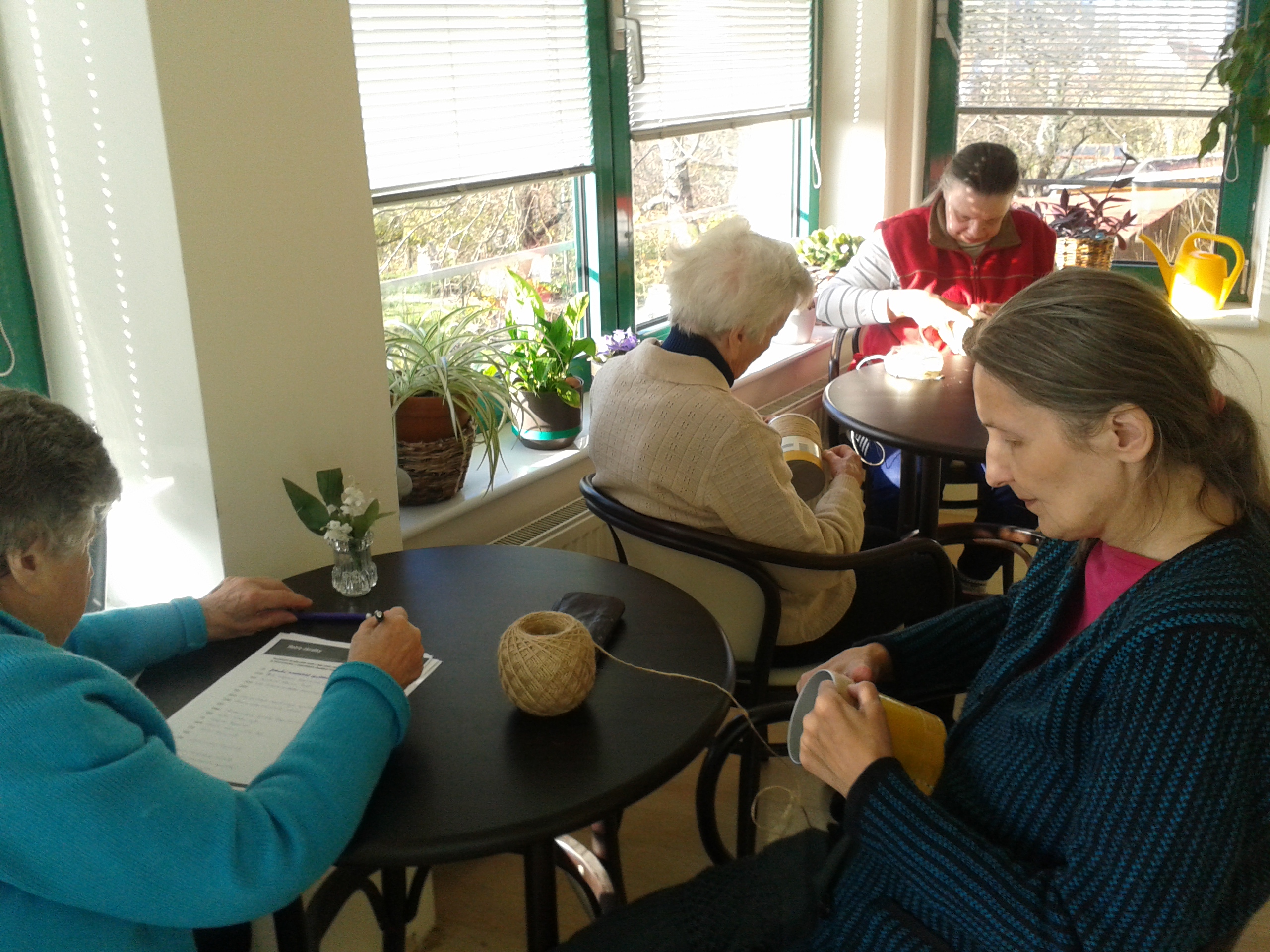 Tvorba výrobků z motouzu, vybarvování omalovánek a práce s barevnými puzzly.