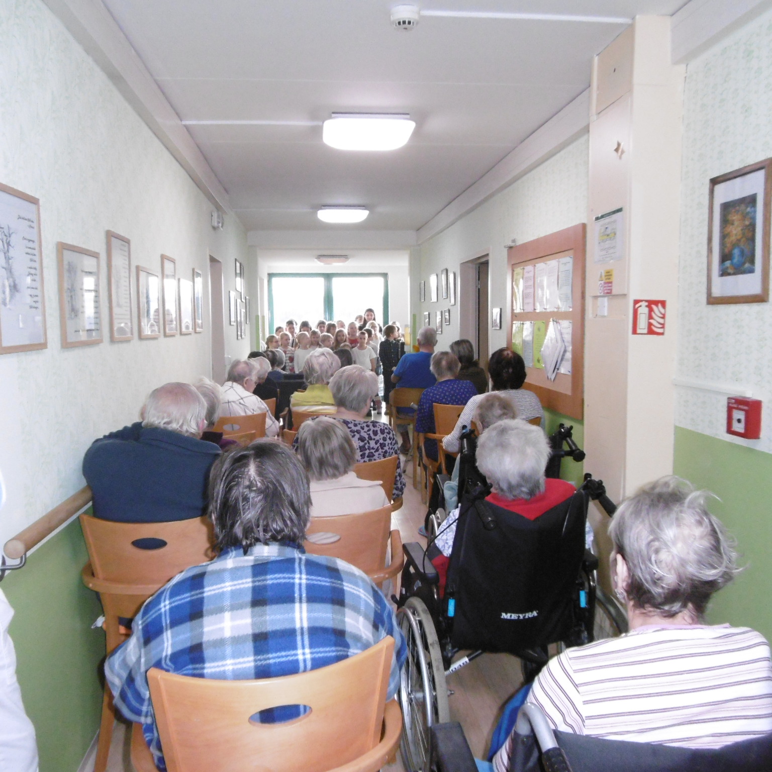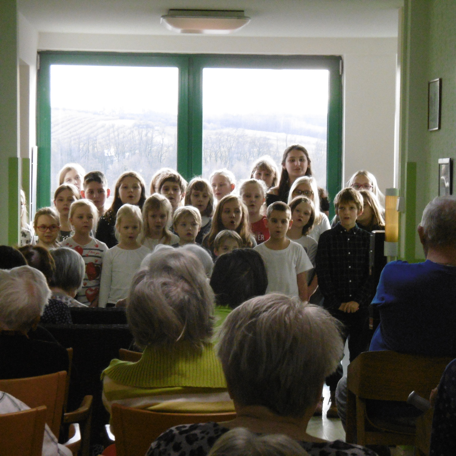 Klienty navštívily děti a v předvánočním čase zazpívaly koledy a rozdaly klientům přáníčka.