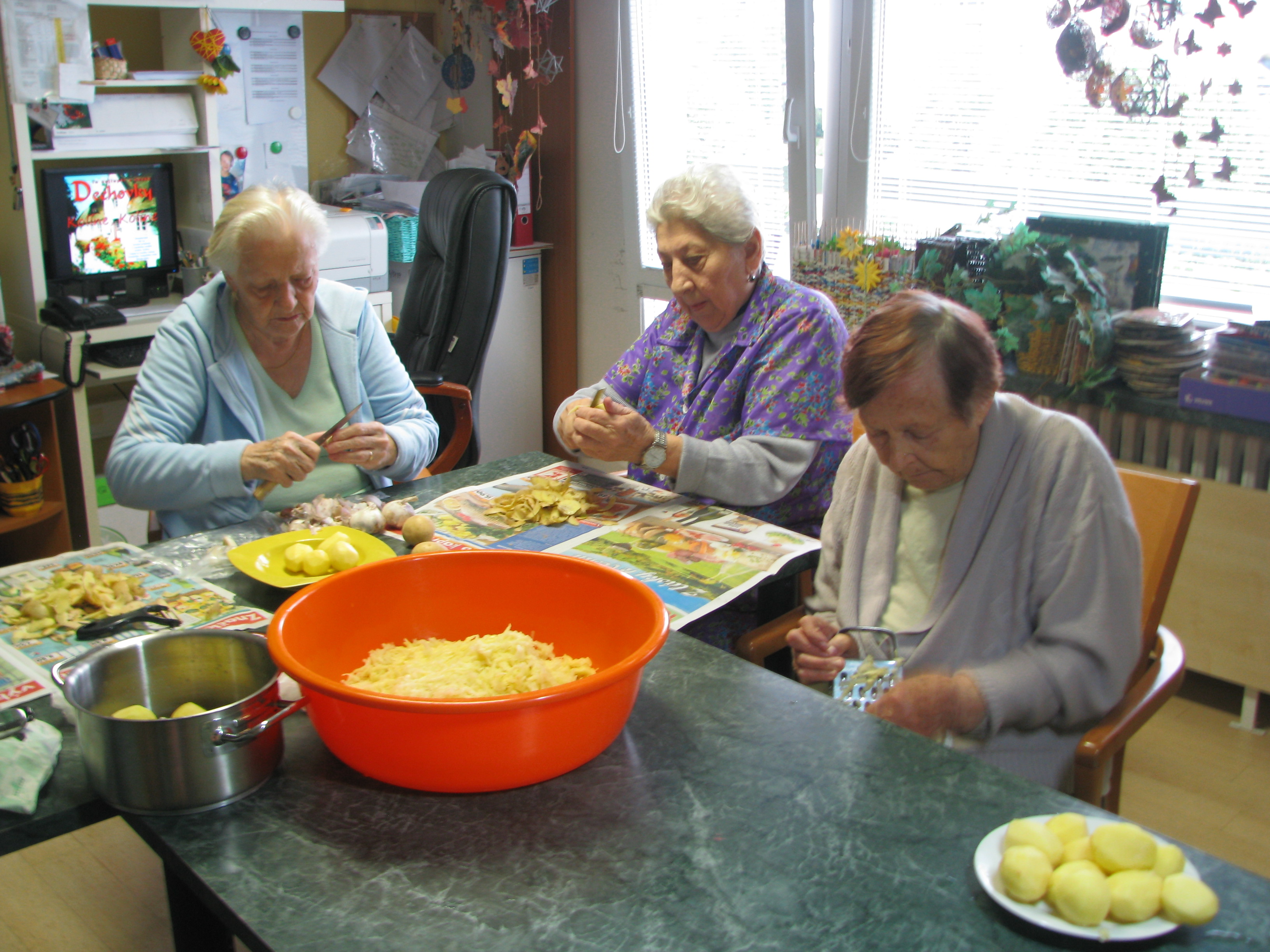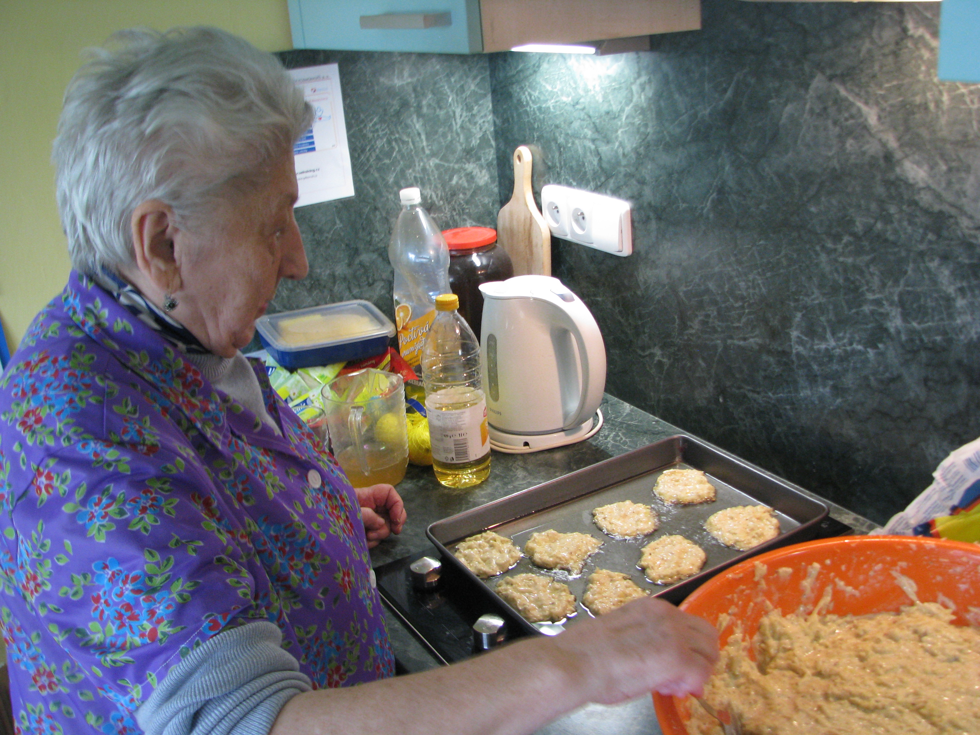 A co, že se připravovalo? Nic jiného, než bramboráky. A že se povedly. Po dosmažení posledního kusu si účastnice skupinky na svých výtvorech znamenitě pochutnali. A nejen ony, o bramboráky se rozdělily s ostatními obyvateli domova.