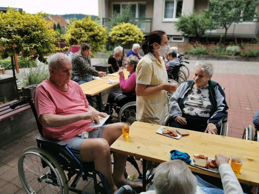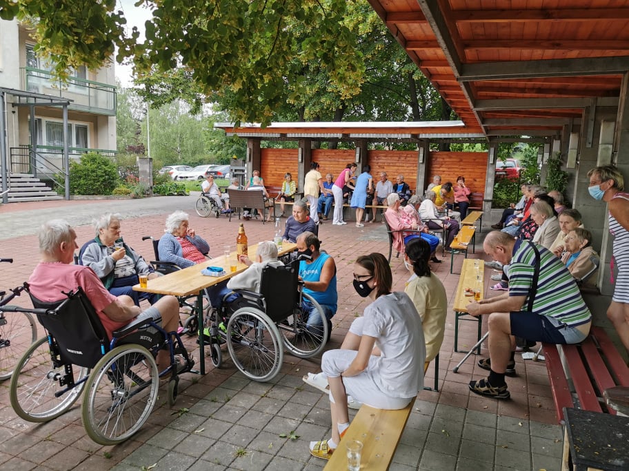 V úterý 16.6.2020 jsme pro klienty uspořádali zahradní grilování a přivítali jsme tak začínající léto. Klienti si pochutnali na grilovaném špekáčku s pivečkem či limonádou. K poslechu hrála reprodukovaná hudba, při které si někteří klienti zazpívali, společně zavzpomínali a strávili příjemné odpoledne v zahradě domova.