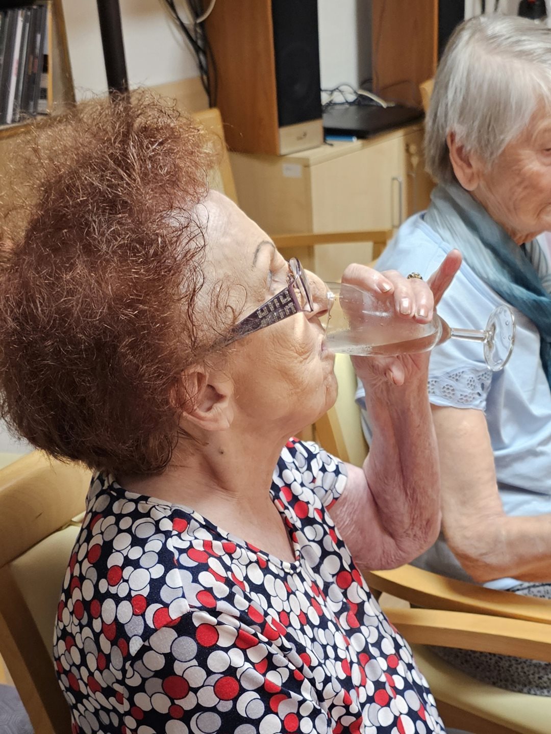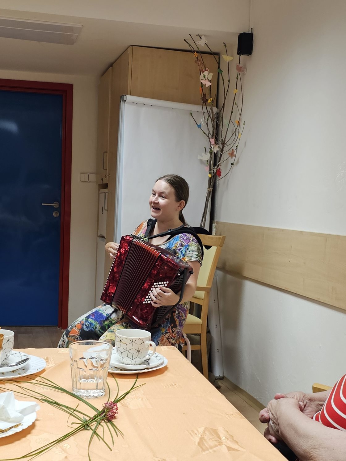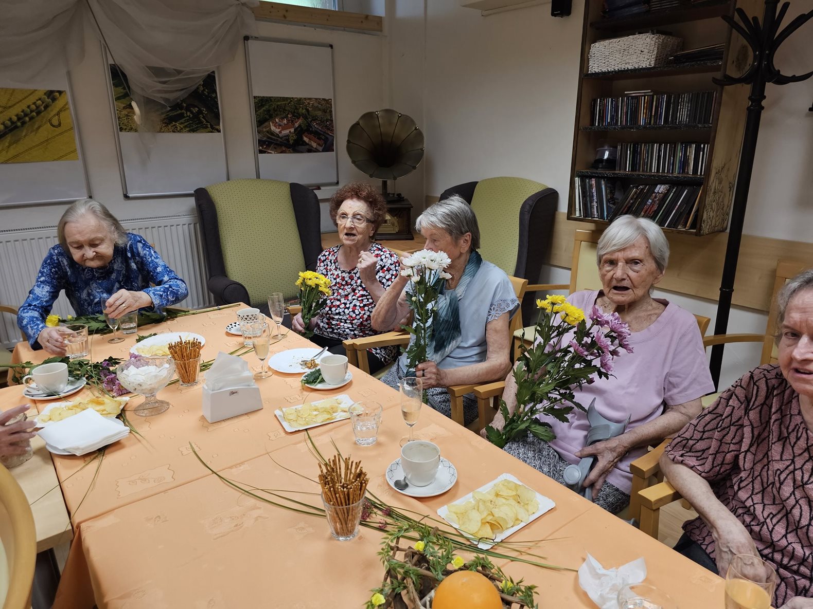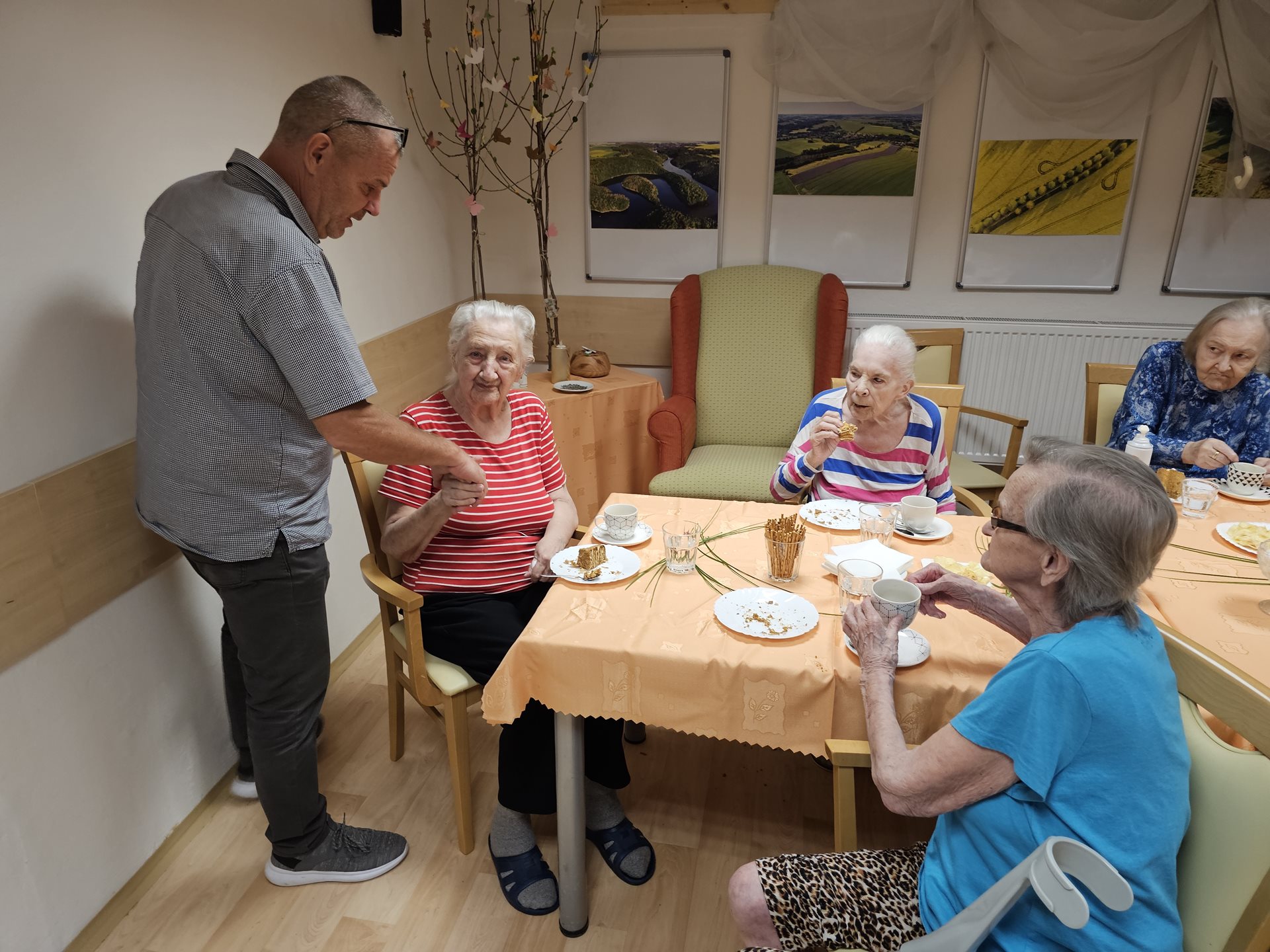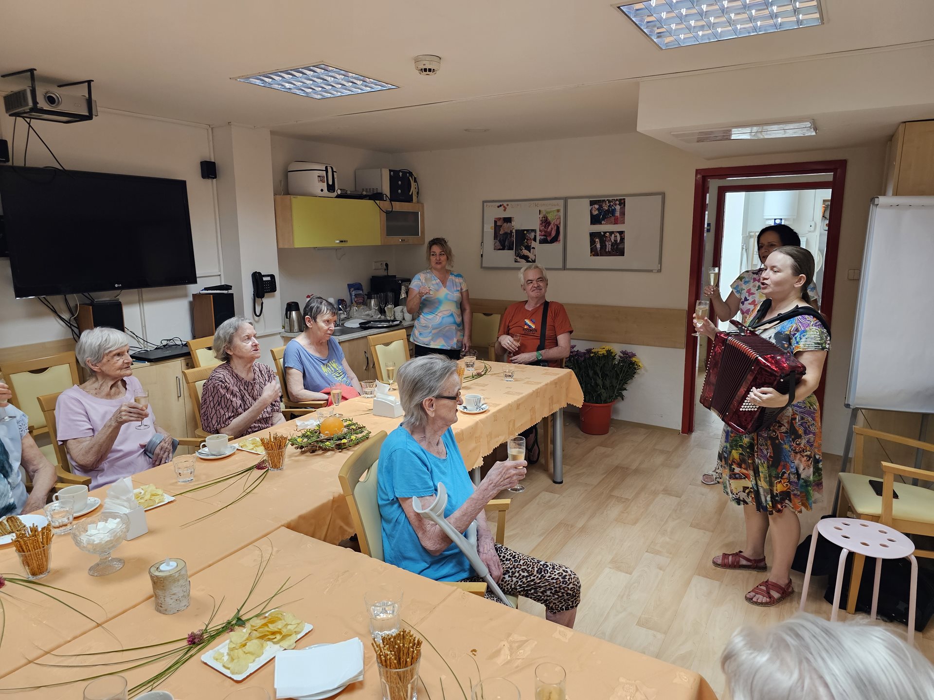 1.7. 2024 se konala oslava narozenin klientů za 2. čtvrtletí tohoto roku. K poslechu a zábavě klientům zahrála na harmoniku a doprovodila zpěvem paní Kniežová. Jako na každé oslavě nechybělo šampaňské, dort a dobrá káva. Svojí přítomností nás potěšil a s květinou klientům popřál i pan ředitel.