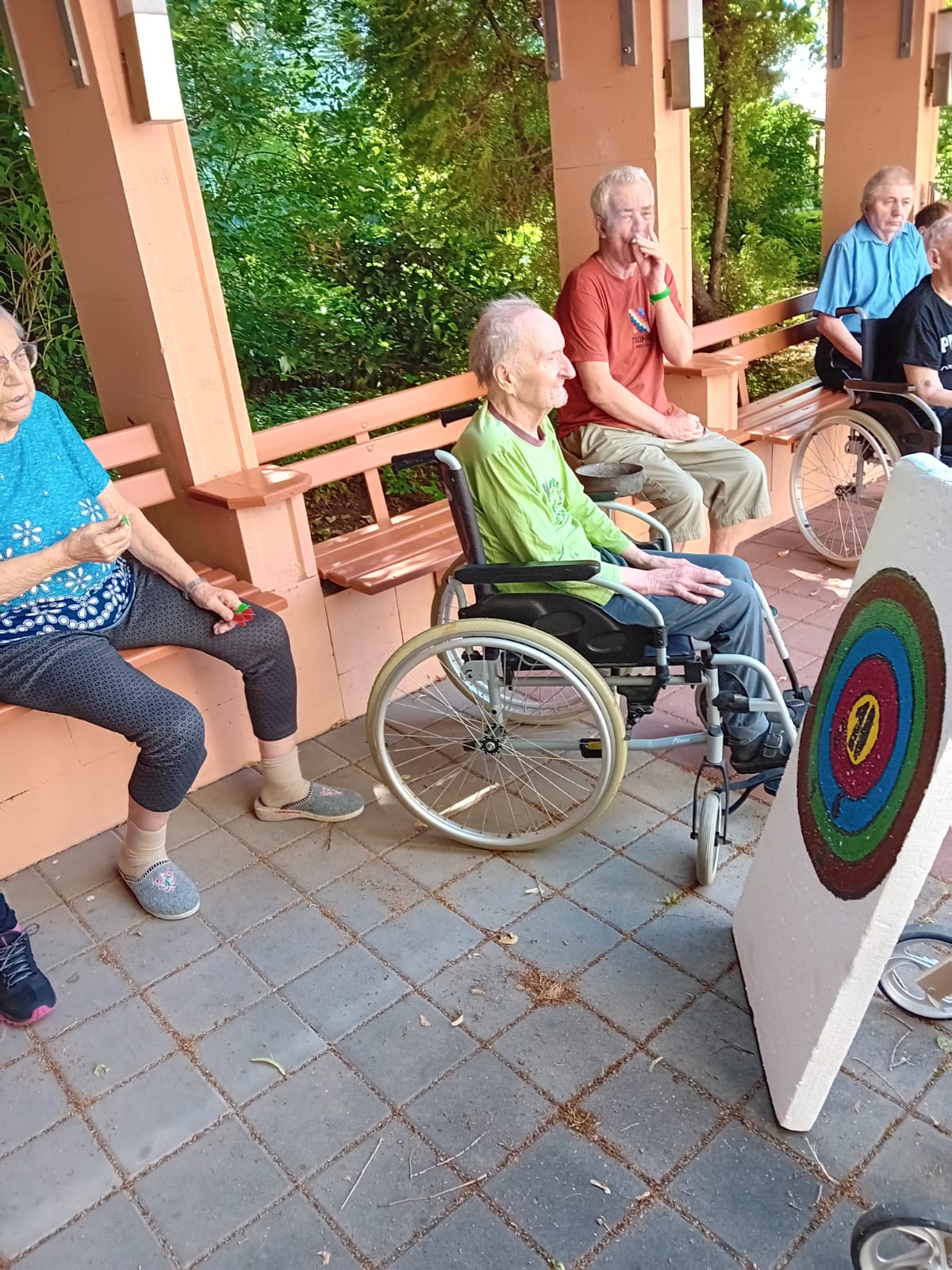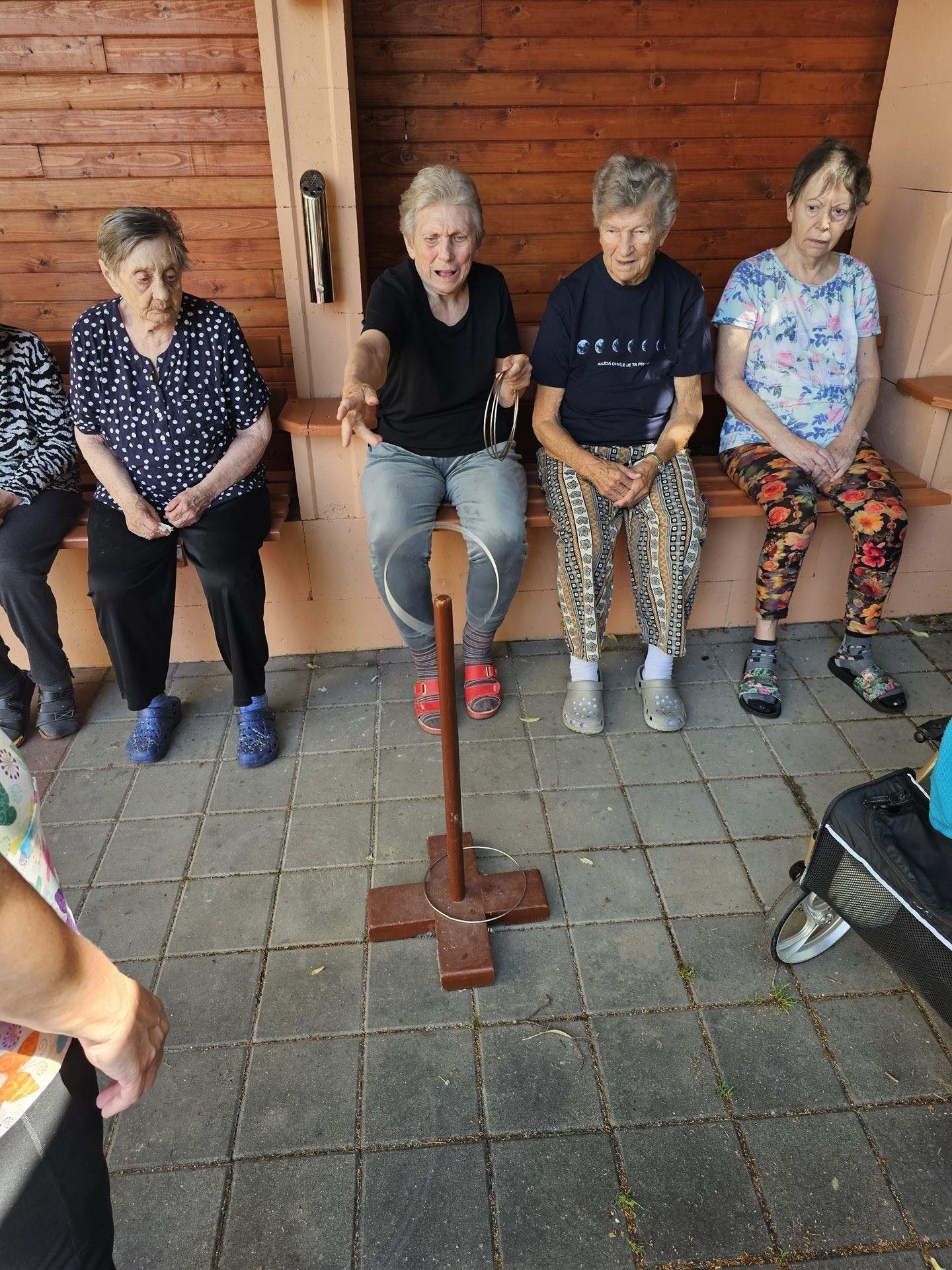 Po snídani než začalo velké teplo, jsme se sešli na zahradě DS, kde byly připraveny pomůcky k různým disciplínám, které jsme si s radostí všichni užili. Také jsme si společně zazpívali a těšíme se na další společné setkání při aktivitách.