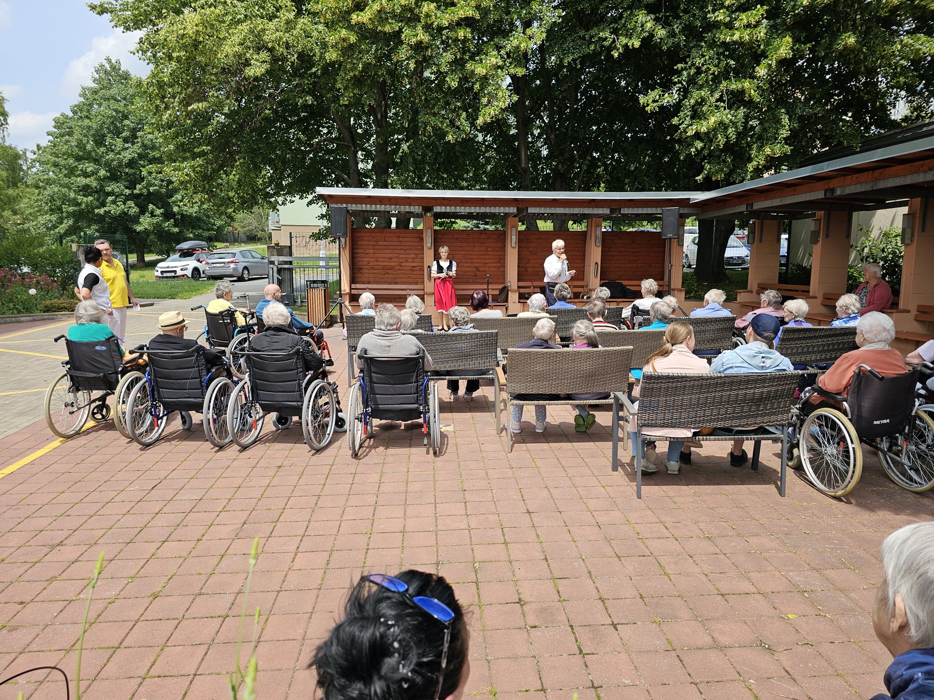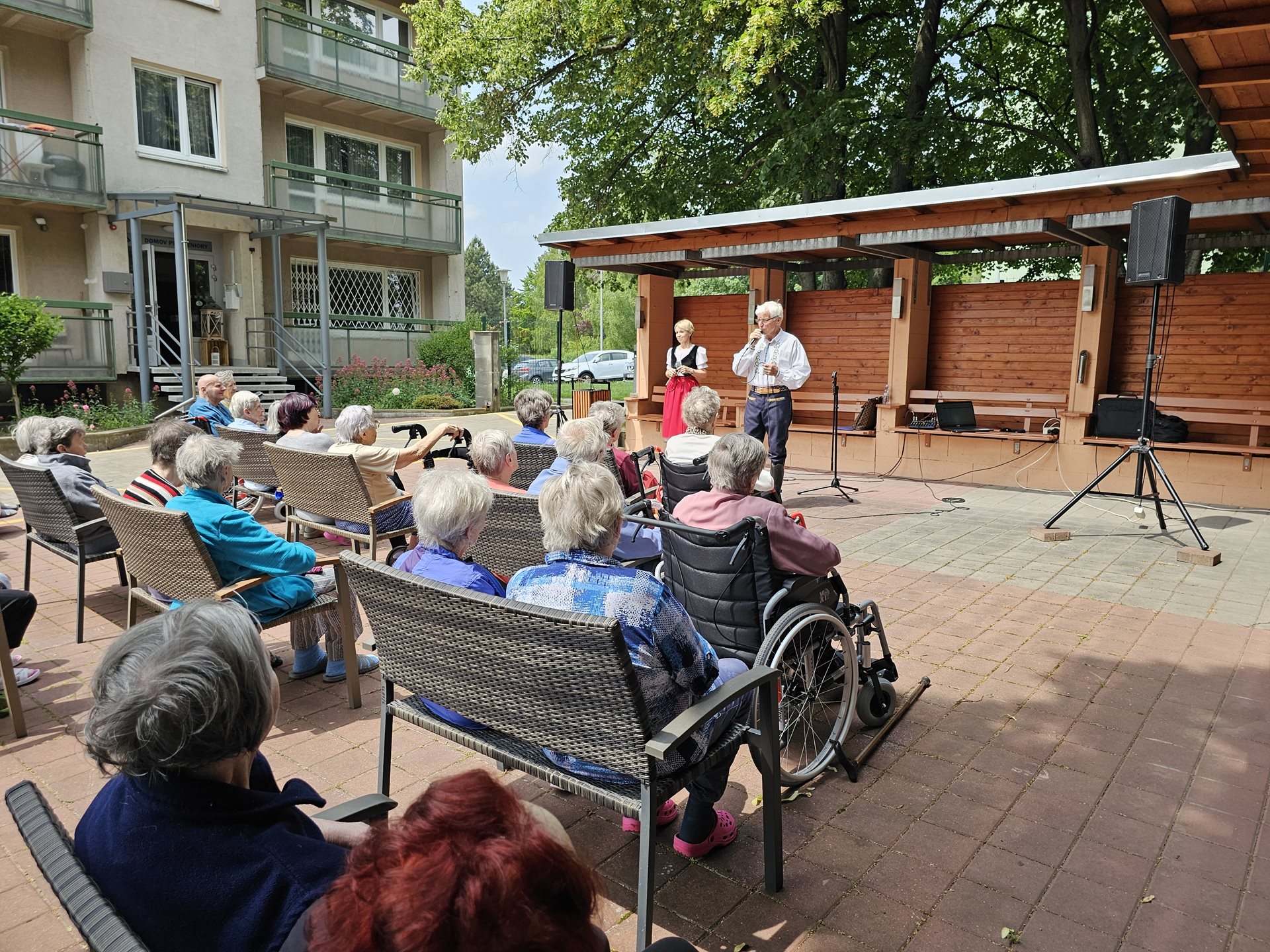 Dne 10.6.2025 nás rozezpíval i roztančil pan Jiří Helán v doprovodu paní Hanky Cvrkalové. Bylo krásné slunečné odpoledne a toto hudební vystoupení nám přineslo dobrou náladu a úsměv, za což jsme vděční a rádi. Děkujeme.