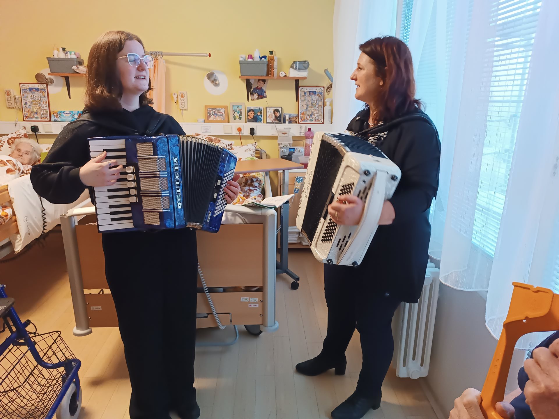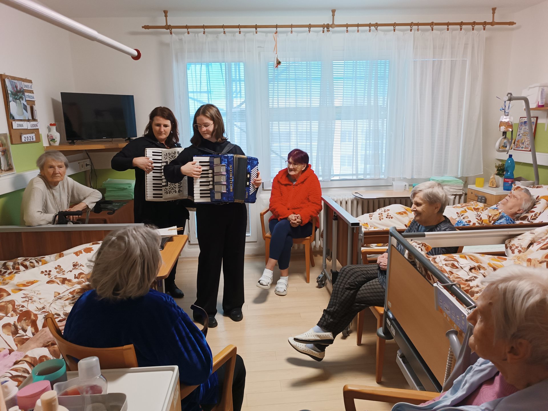 Naše klienty přijela potěšit svým hudebním vystoupením na harmoniku paní Zdeňka Koukalová s dcerou Marií. Návštěva proběhla díky nadaci Ježíškových vnoučat. Budeme moc rádi, když se znovu budeme moci potkat. Děkujeme