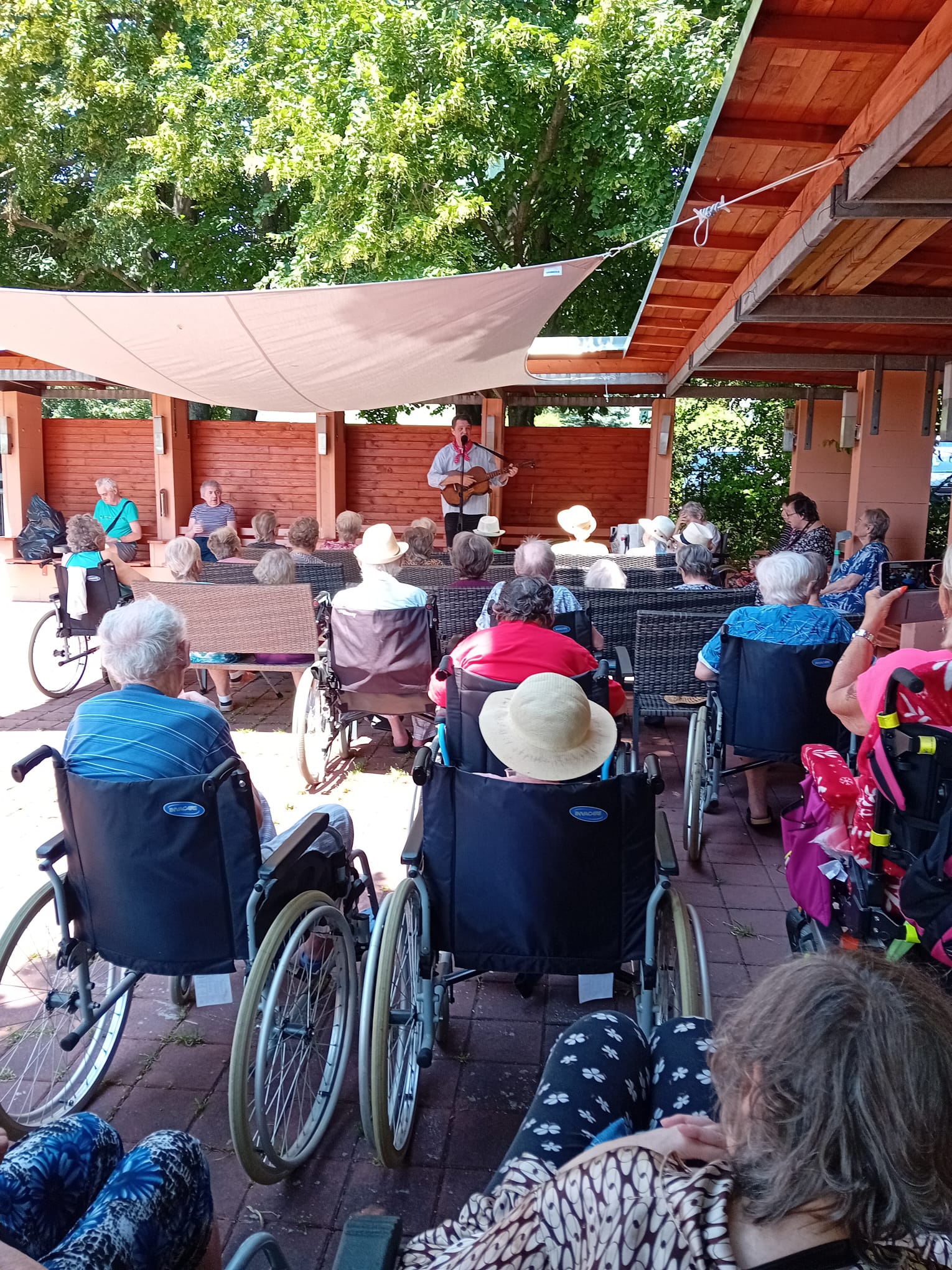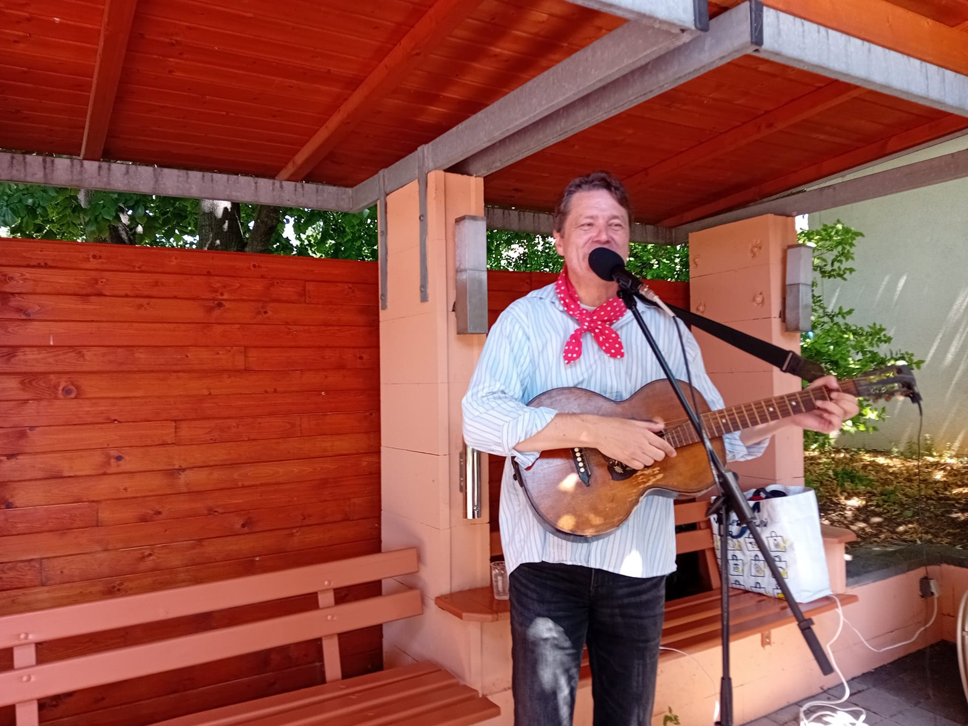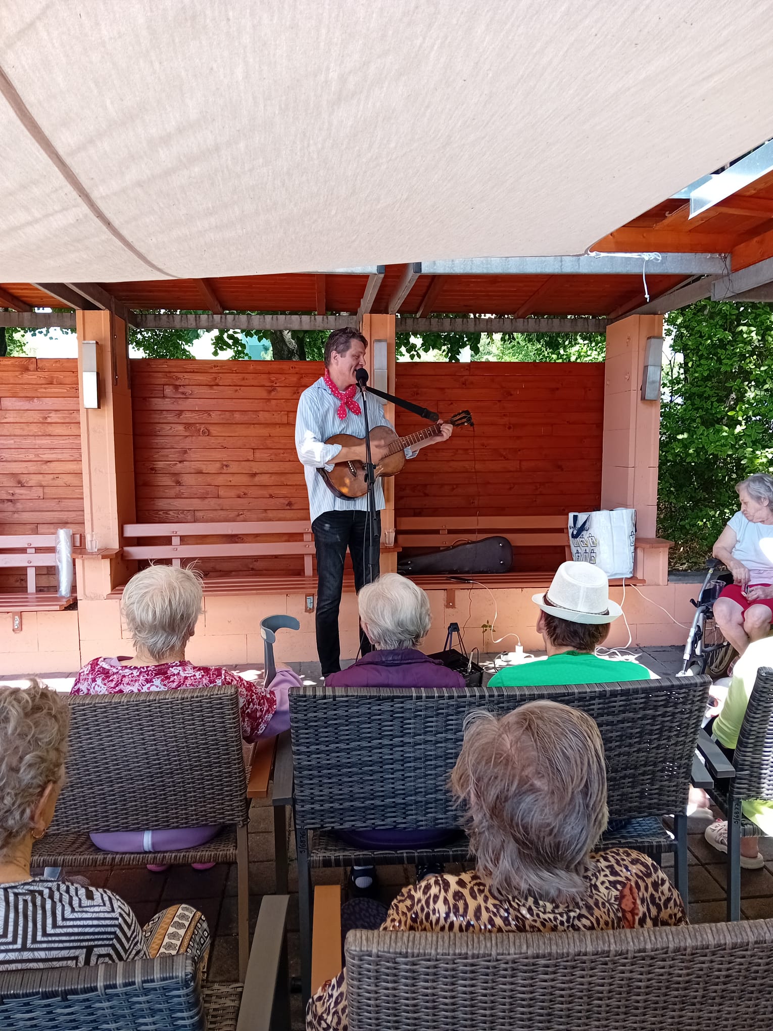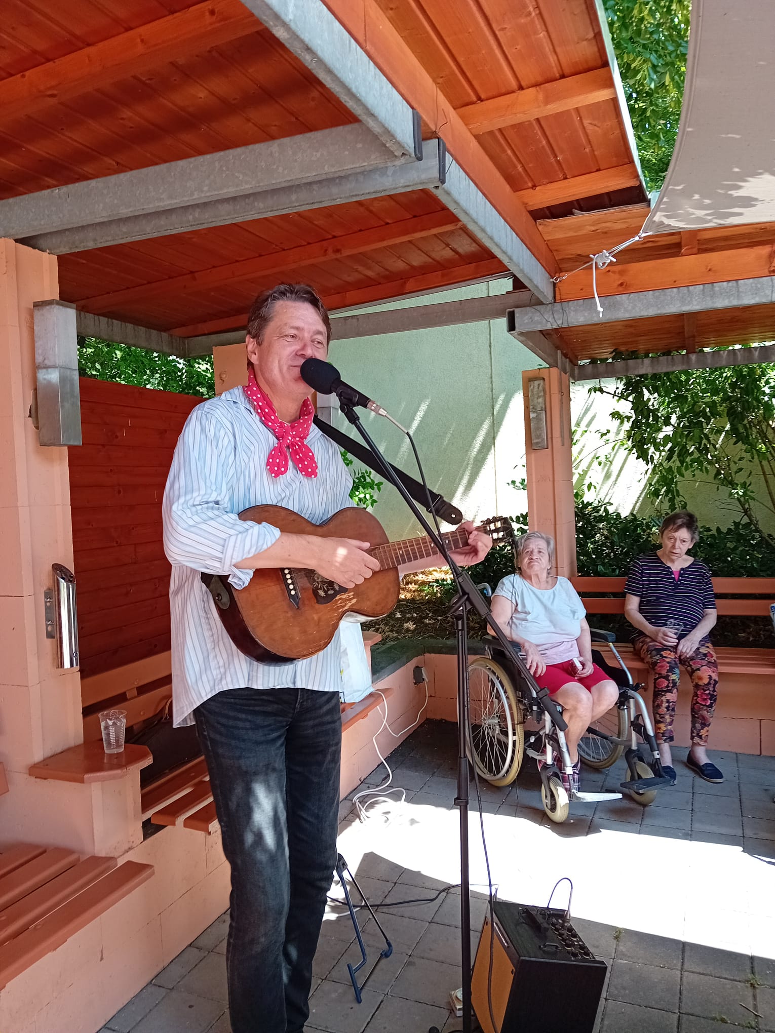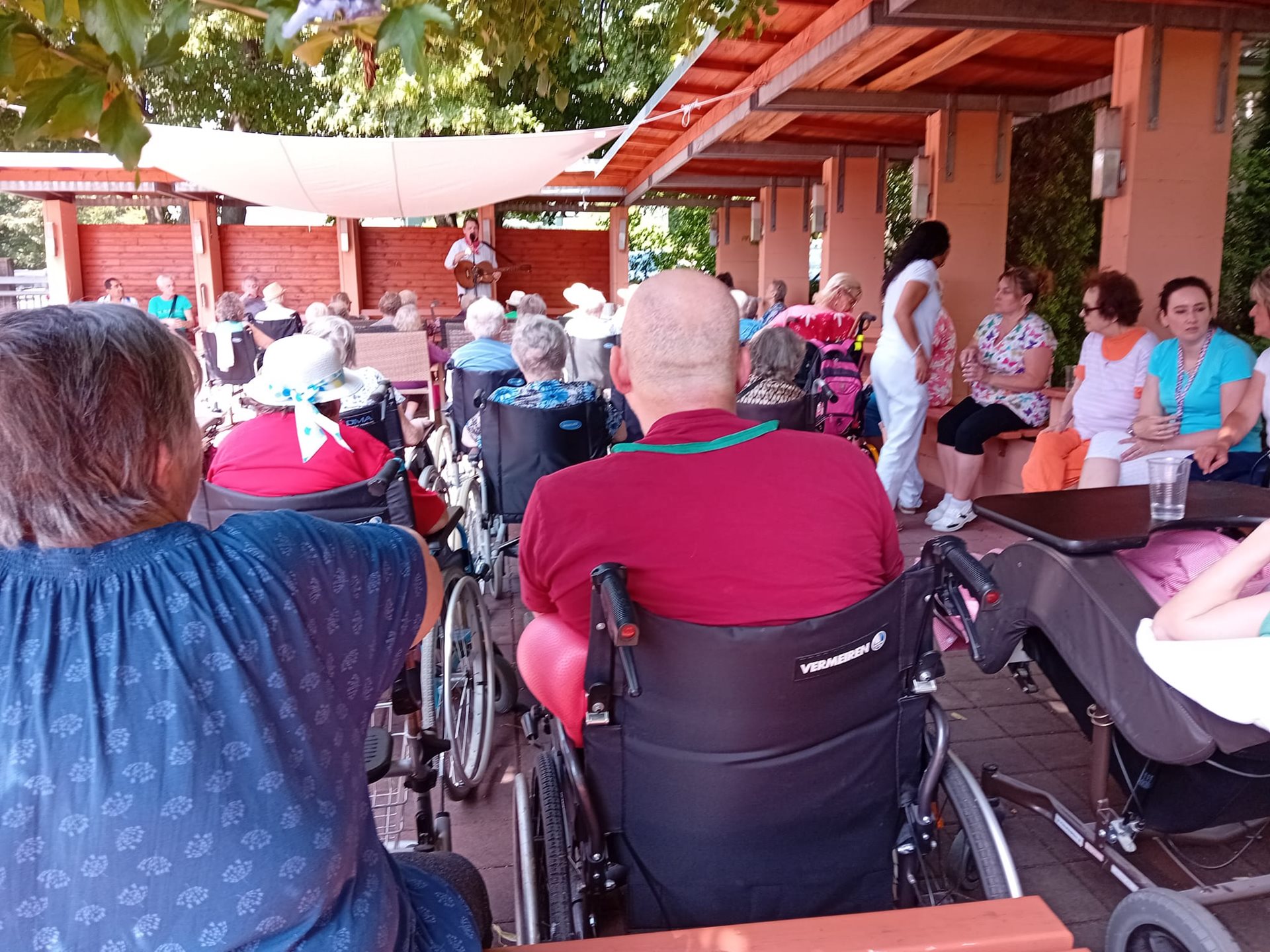V pondělí 15.7. 2024 potěšilo naše klienty vystoupení pana Vladimíra Pecháčka, bývalého člena skupiny Šlapeto. Za doprovodu kytary zazpíval lidové písně, populární hity Karla Hašlera i známé melodie z filmů pro pamětníky. Postupně se ke zpěvu přidali i klienti. Atmosféra byla veselá. Děkujeme za toto vystoupení. Budeme se těšit na další setkání.