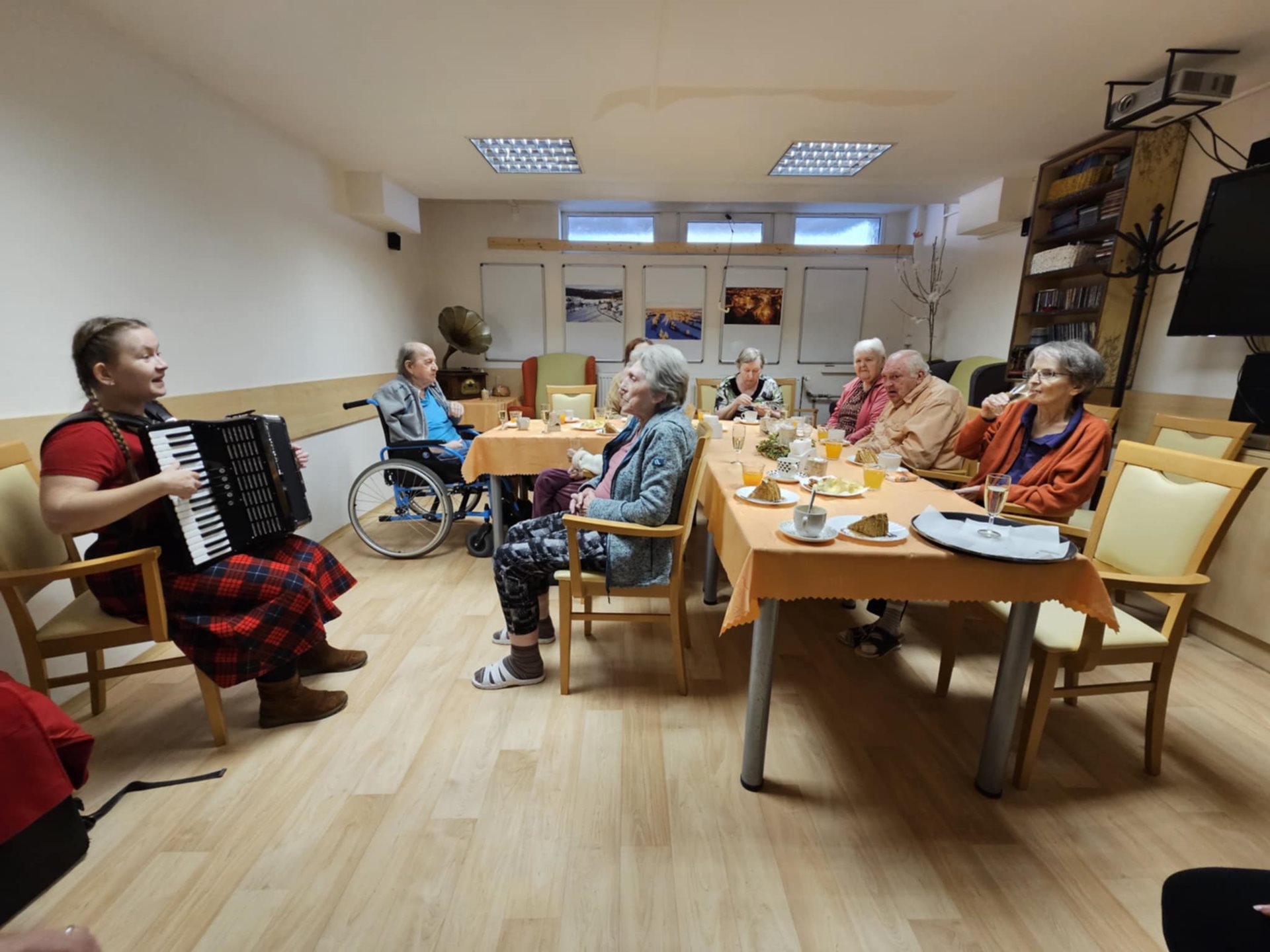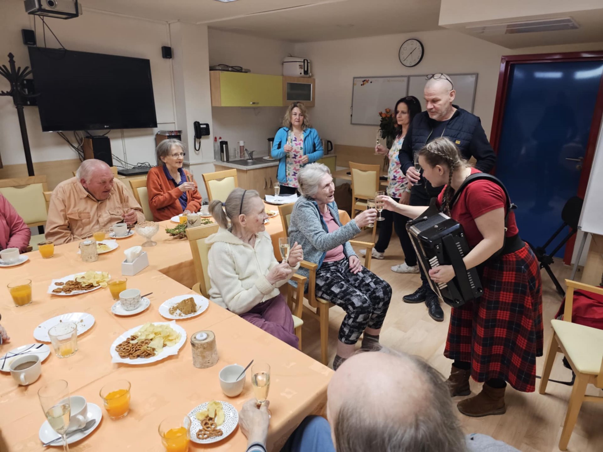 Dne 19.2. 2025 se konala společná oslava narozenin našich klientů. Ke gratulacím se připojil i pan ředitel. K pohoštění a dobré náladě nám zahrála na harmoniku paní Tereza Kniežová a společně jsme si všichni s radostí zazpívali.