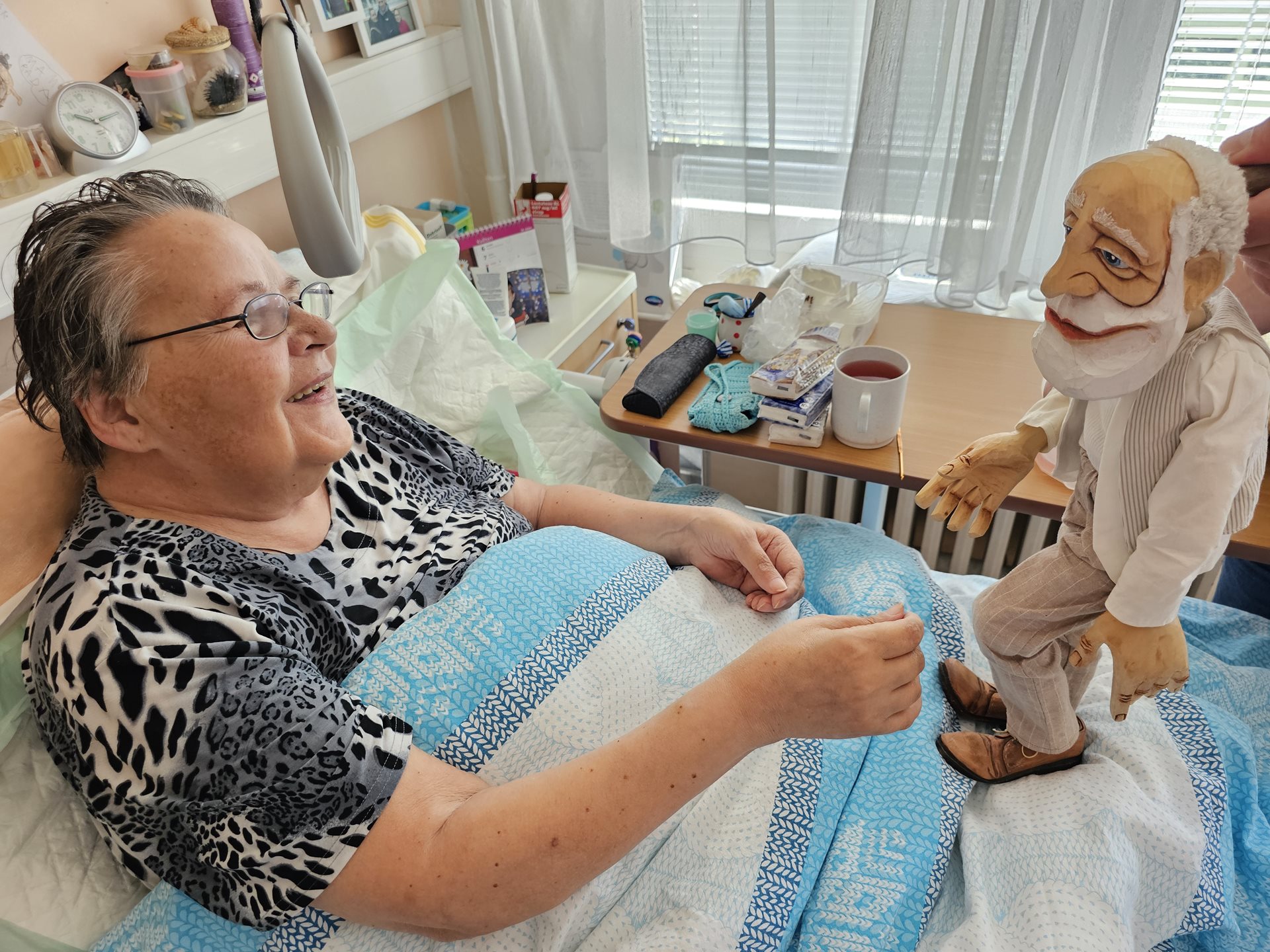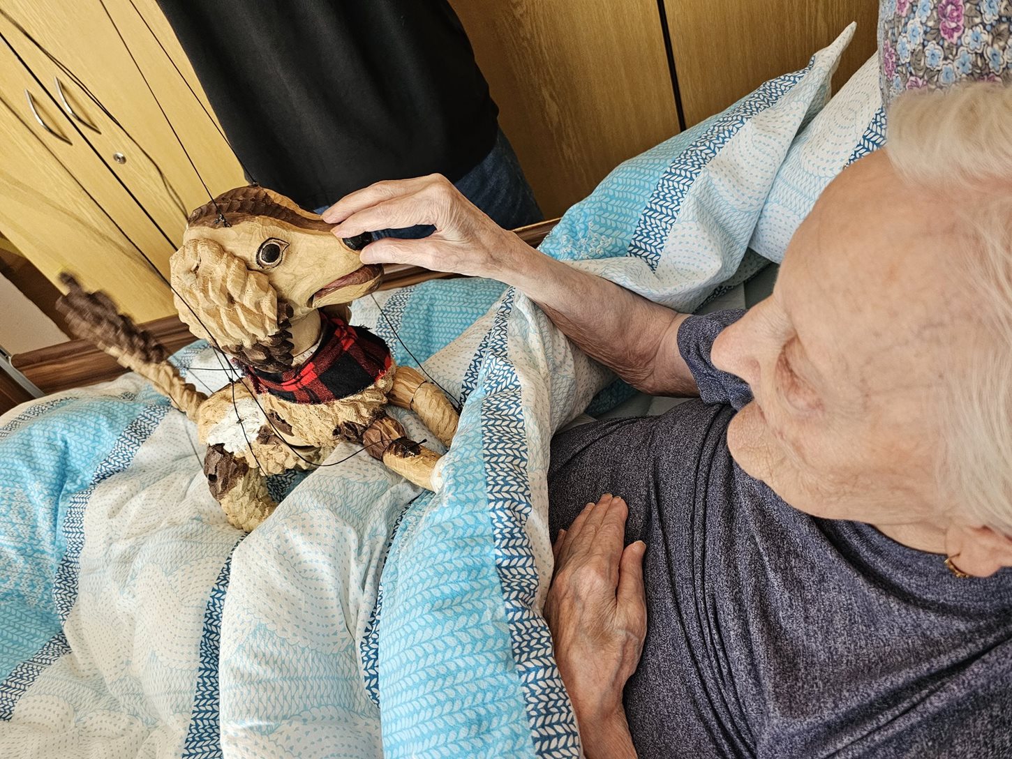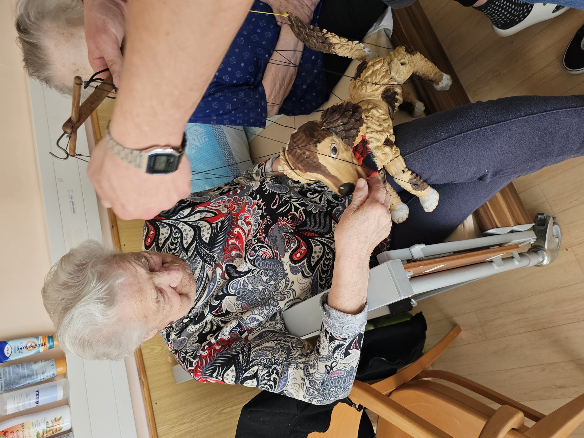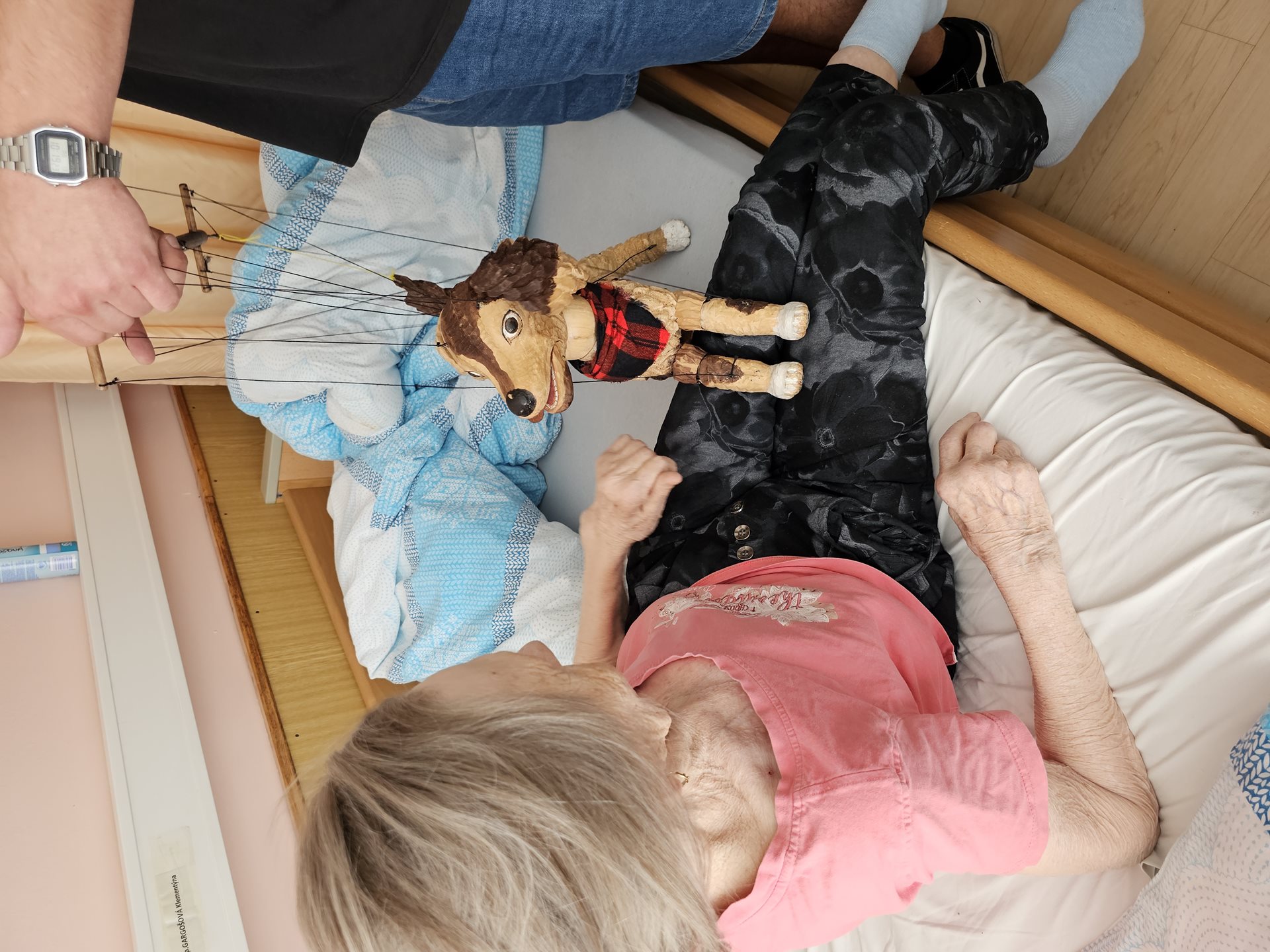 13.5.2024 navštívily naše klienty loutky z Divadla bez pravidel. Tentokrát individuálně u lůžek klientů na 2. oddělení. Jejich návštěva u nás není první, stala se již pravidelnou a stále oblíbenou.