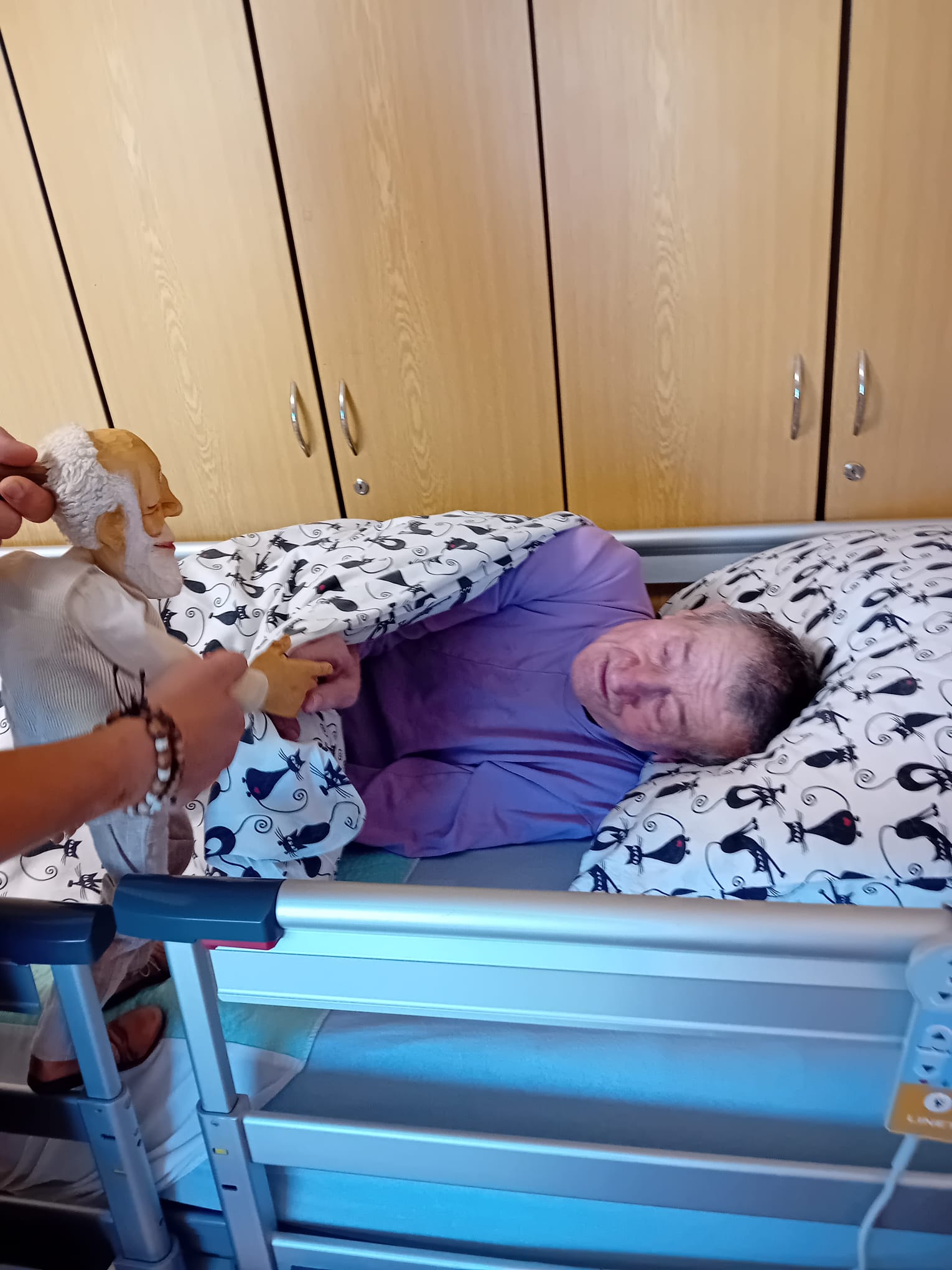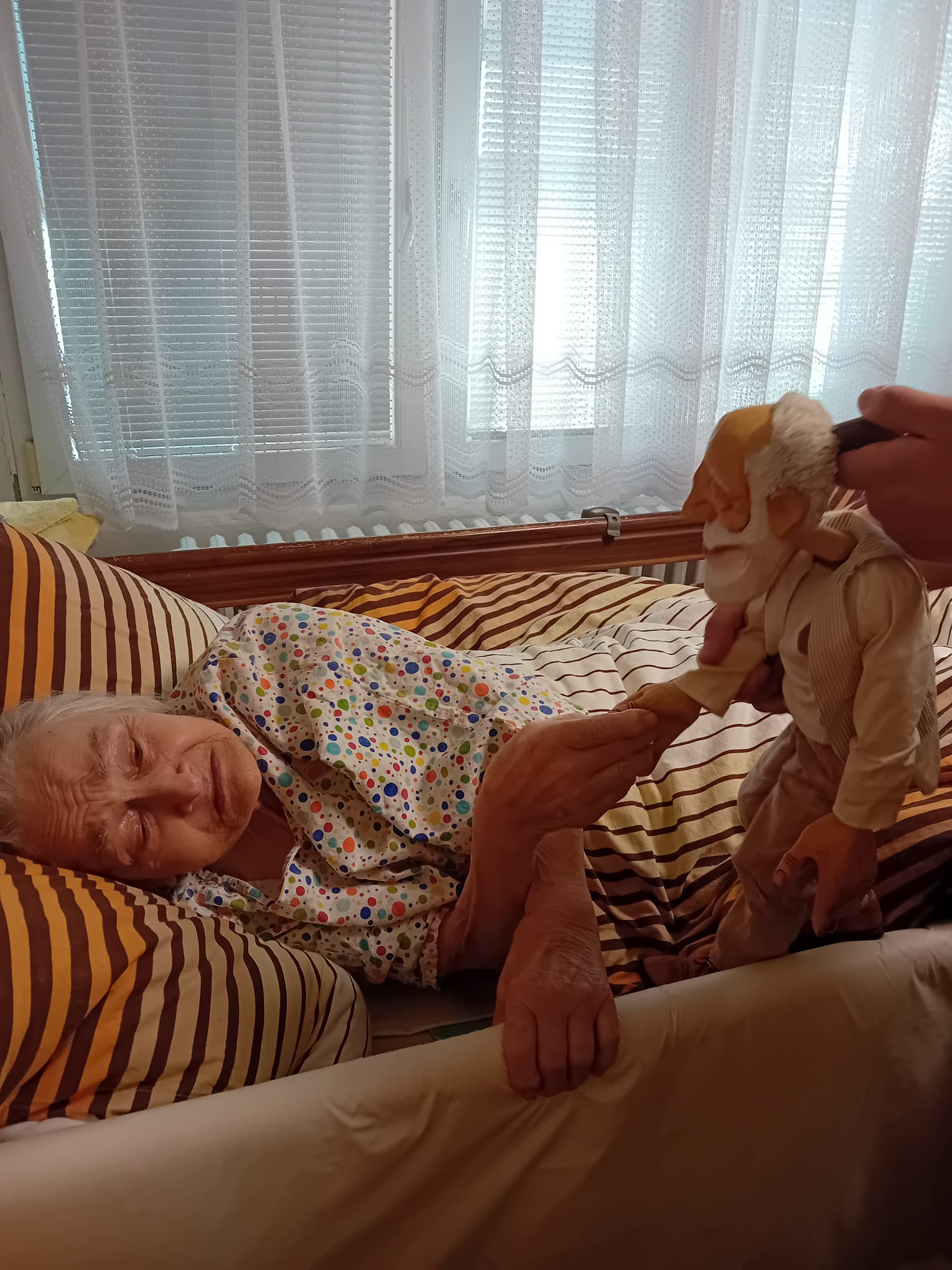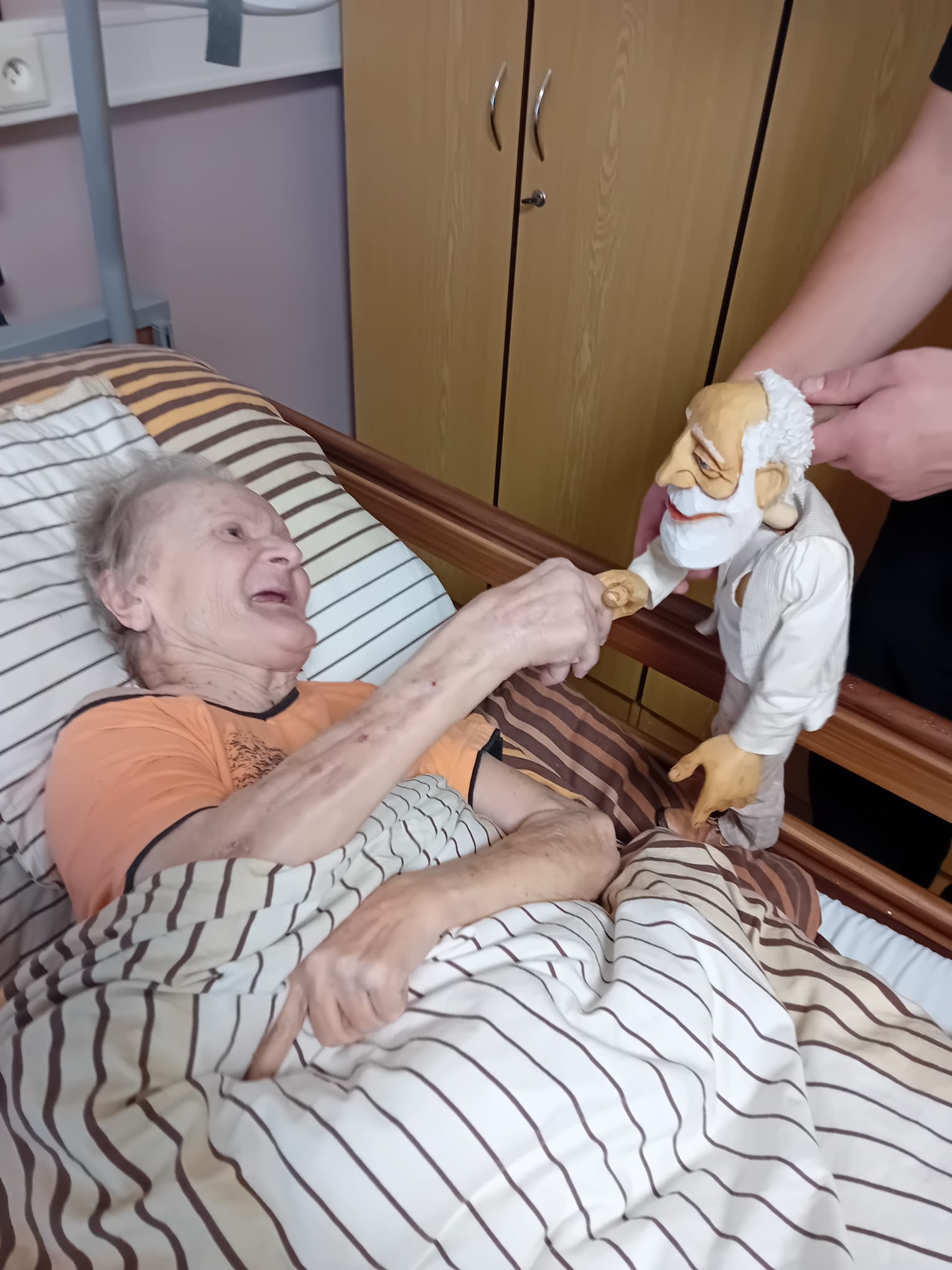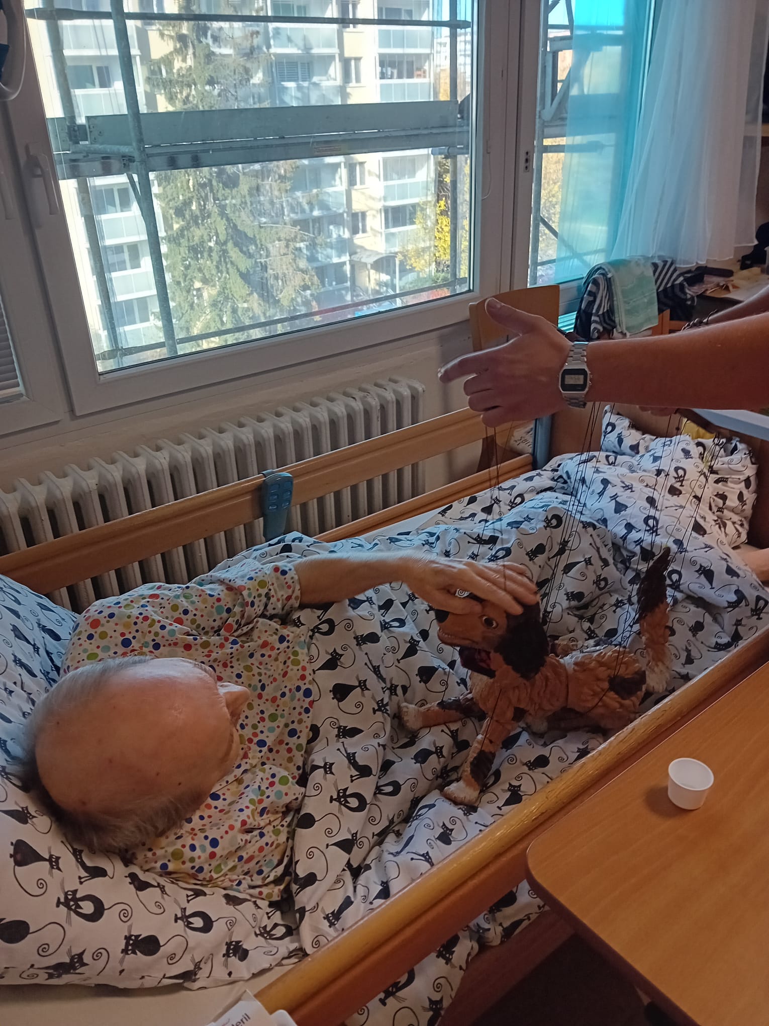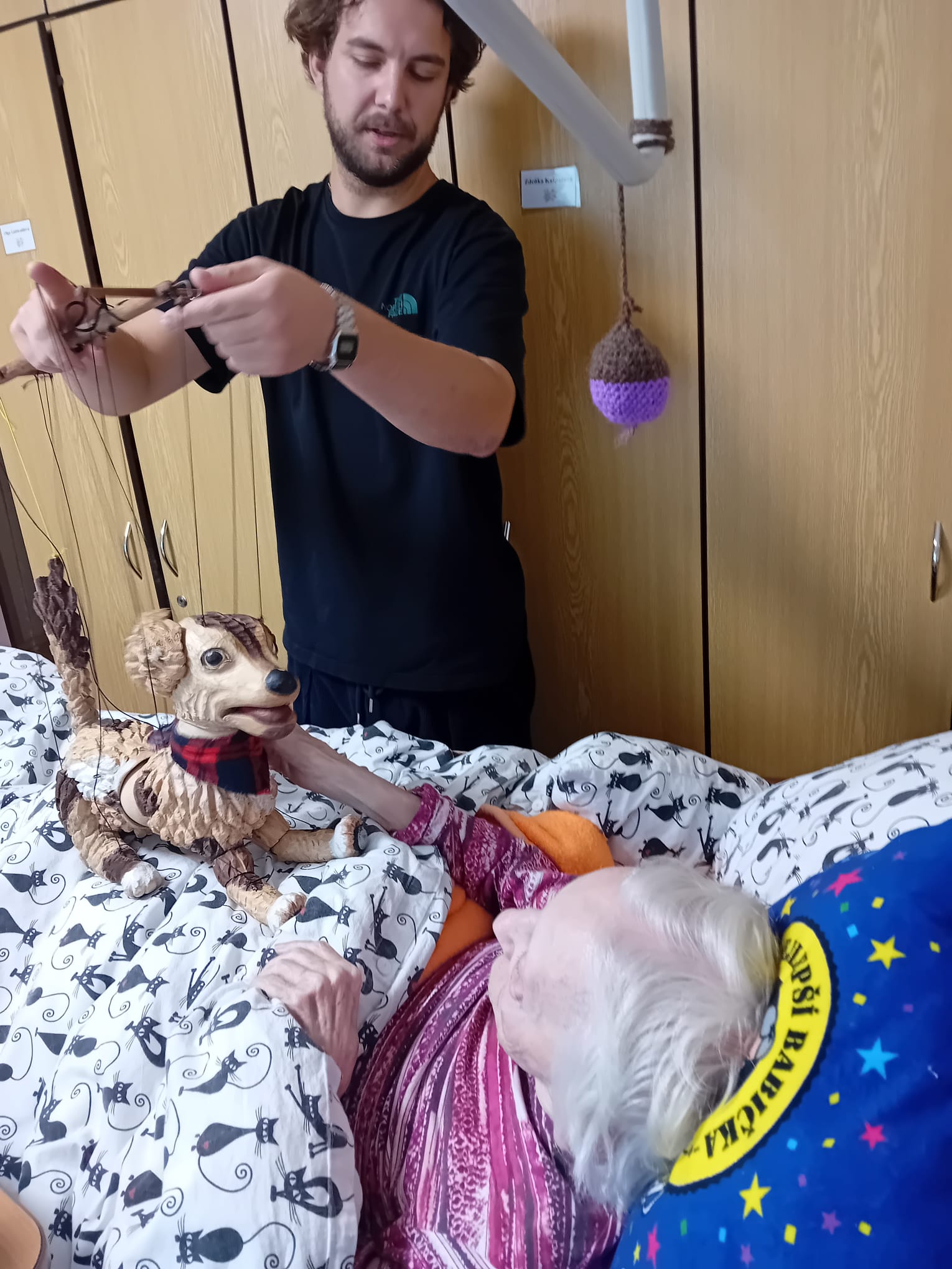 A opět naši klienti v domově přivítali své kamarády, dědečka Františka a pejska Raťafáka z Divadla bez pravidel. Rádi si s nimi povídají, a cítí se v jejich přítomnosti hezky. Moc děkujeme za návštěvu.