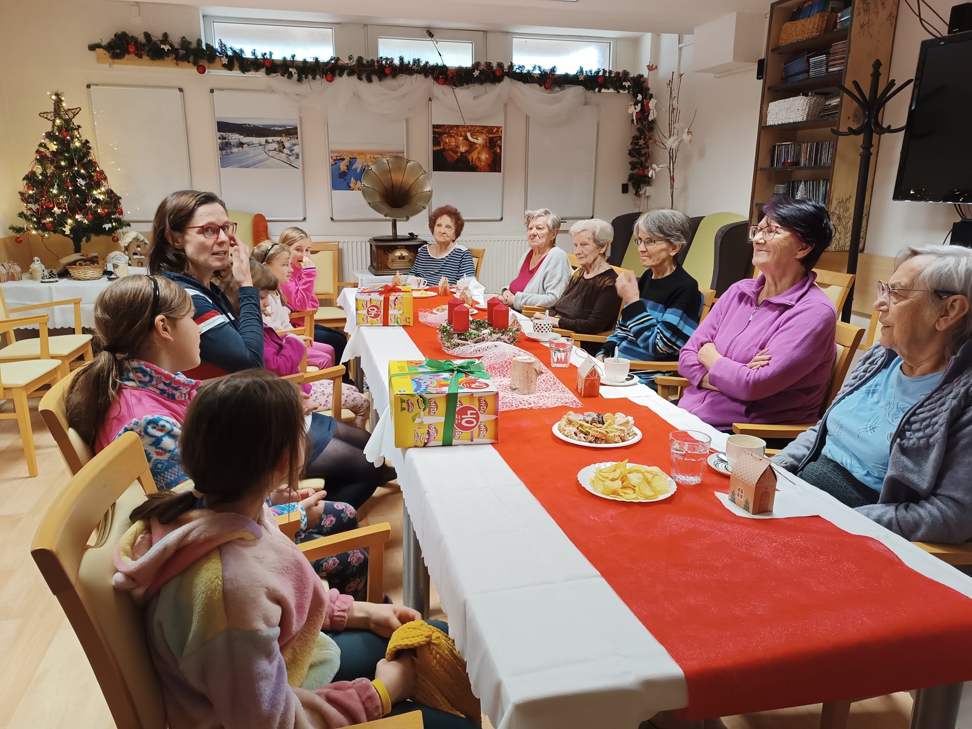 Dne 19.12.2024 nás navštívily děti z CVČ Linka s paní učitelkou, kteří našim klientům přinesly vánoční dárky. Děti každoročně pořádají vánoční jarmark a za výtěžek z tohoto jarmarku chtěly udělat radost našim klientům. Jsme rádi za toto mezigenerační setkání, které nebylo první a věříme, že se opět společně setkáme. Děkujeme za milou návštěvu dětem i paní učitelce, která vše zprostředkovala.