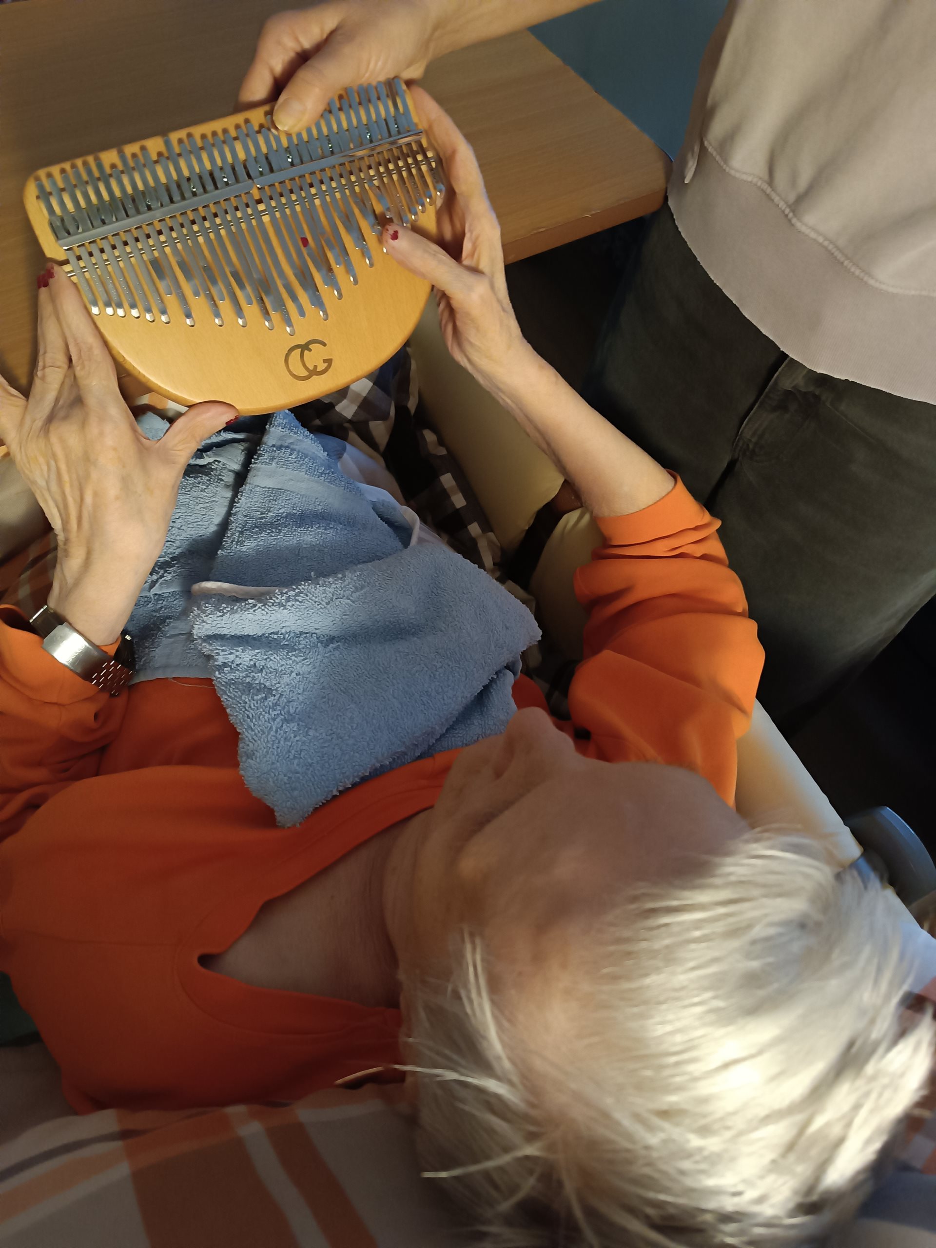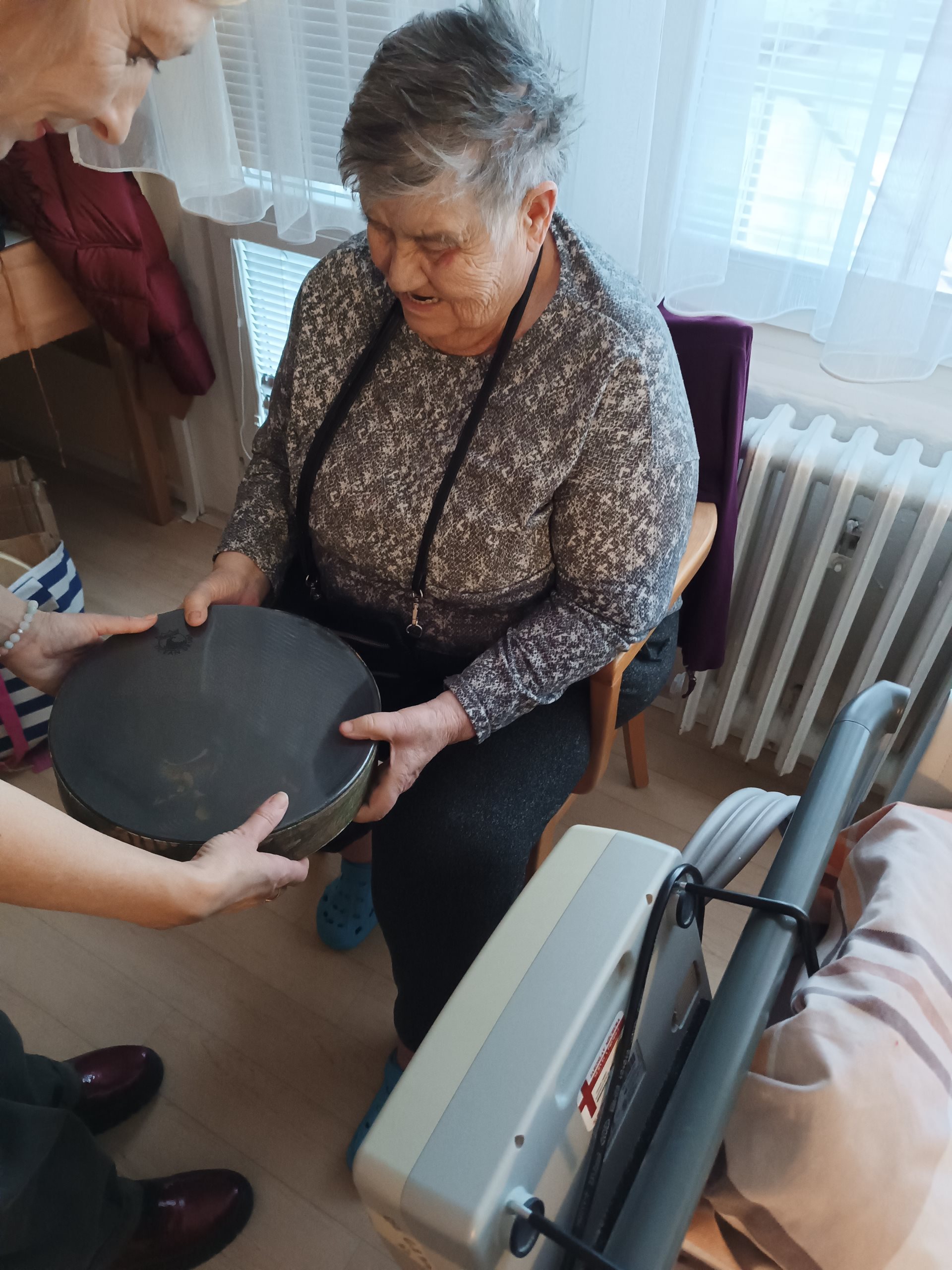 Opět nás navštívila paní Klára Veselá se svými léčivými nástroji, která navštívila především naše imobilní klienty na pokojích. Klienti měli možnost si tyto nástroje vyzkoušet a tím zapojili své smysly jako je hmat, sluch a zrak. U některých klientů tyto zvuky vyvolaly různé příjemné vzpomínky. Děkujeme za příjemné odpoledne, které bylo přínosem pro naše klienty a těšíme se na další návštěvu.