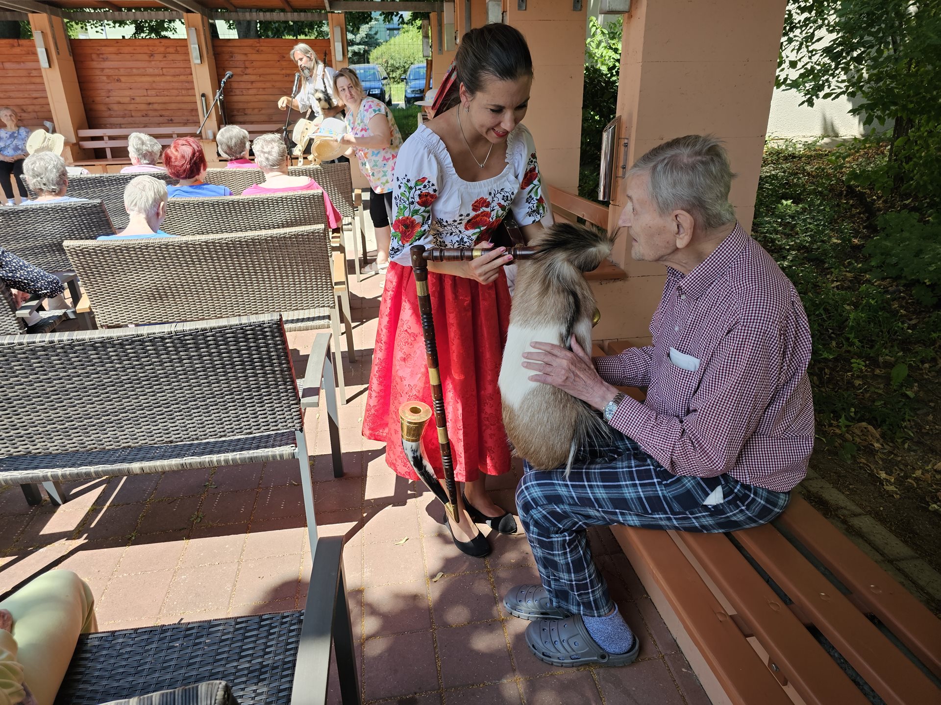 Páteční odpoledne 20.6.2025 si klienti užili na zahradě DS, kde nám ke krásnému počasí hráli Dudáci Tryhuci. Zpívalo se, vyprávělo a atmosféra byla jako vždy, když se dudy rozezní nádherná. Děkujeme za krásný zážitek.