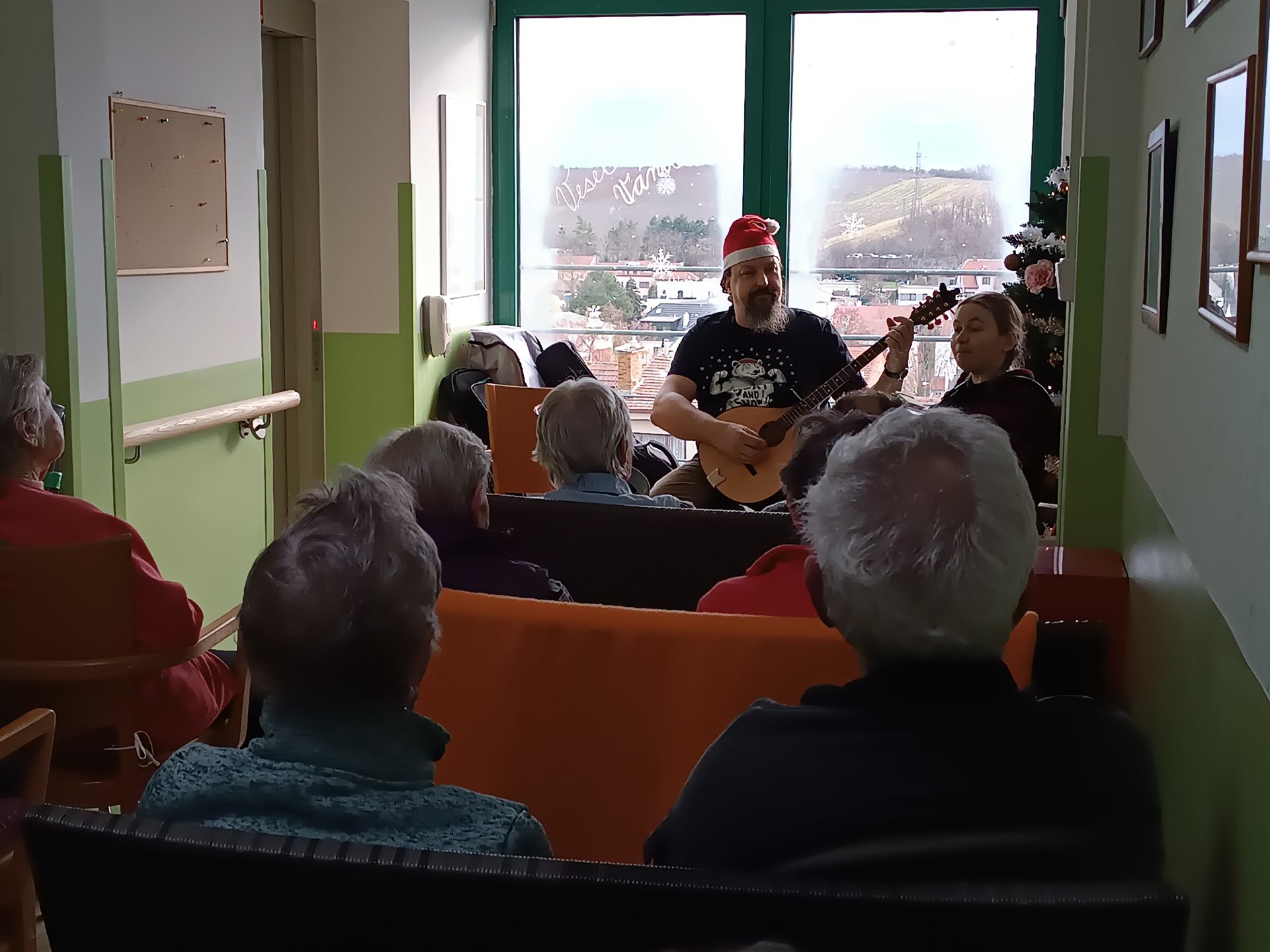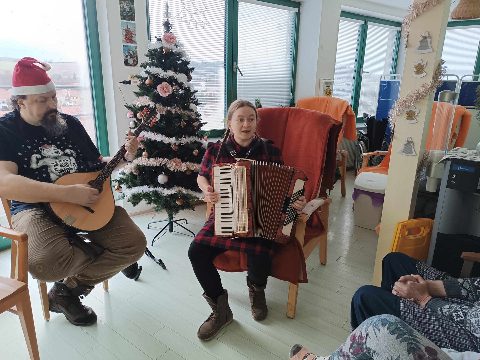 Vánoční období našim klientům přišla zpříjemnit paní Tereza Kniežová se svým manželem. Zazněly známé písničky z pohádek a vánoční koledy, které si s radostí zazpívali i klienti.