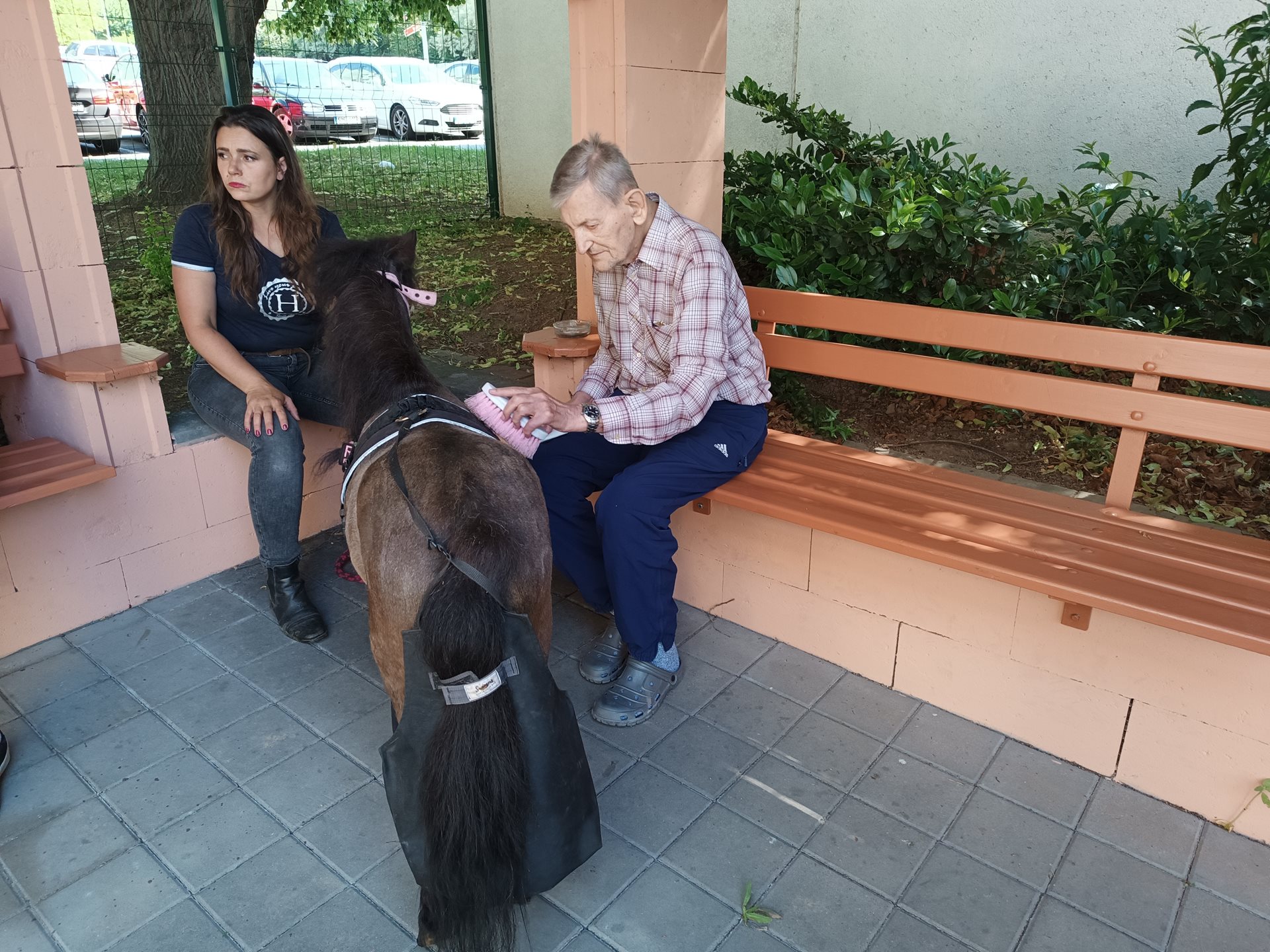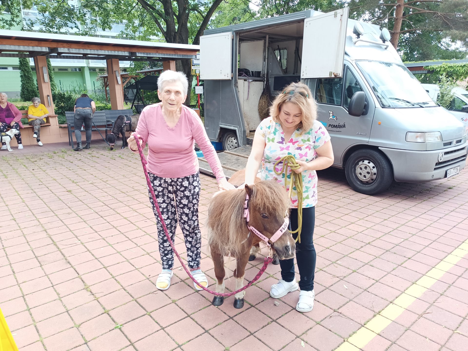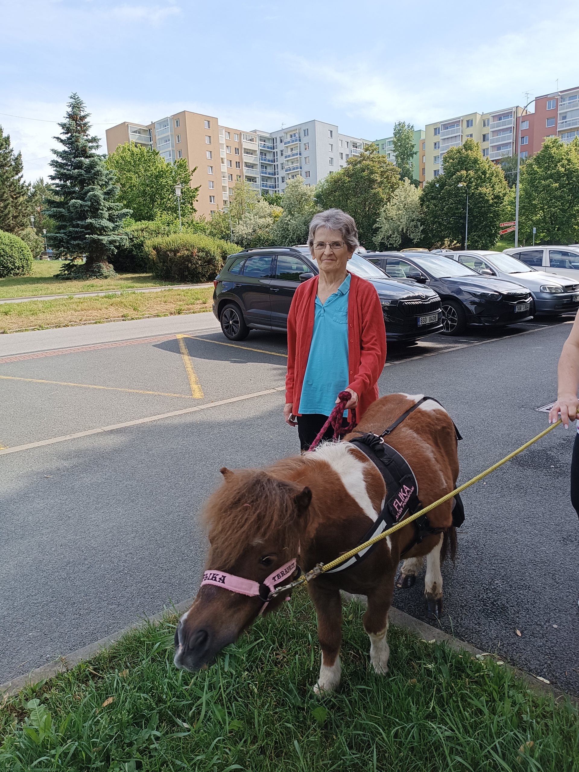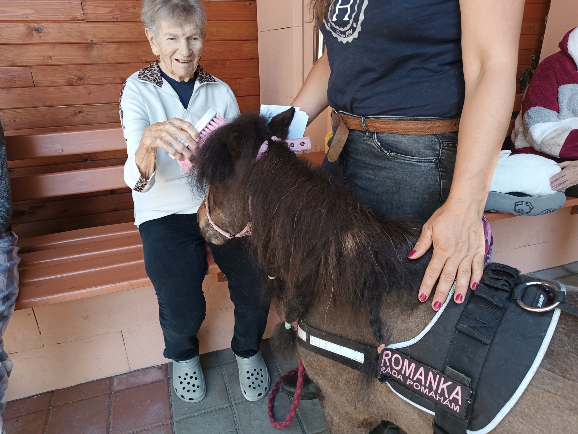 V pondělí 2.6. 2025 nás opět navštívila zkušená chovatelka paní Veronika s poníkem Romankou a Flikou. Dále pak potěšila klienty s fenkou Dášenkou, kohoutkem a králíčky. Pro klienty je kontakt se zvířátky vždy velký zážitek. Byli nadšeni i z vědomostního kvízu, který pro ně na kartičky paní Veronika připravila a mohli odpovídat na otázky. Ještě další den na toto setkání vzpomínali.