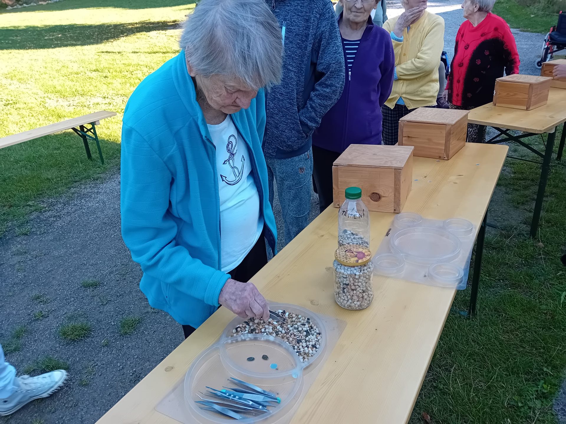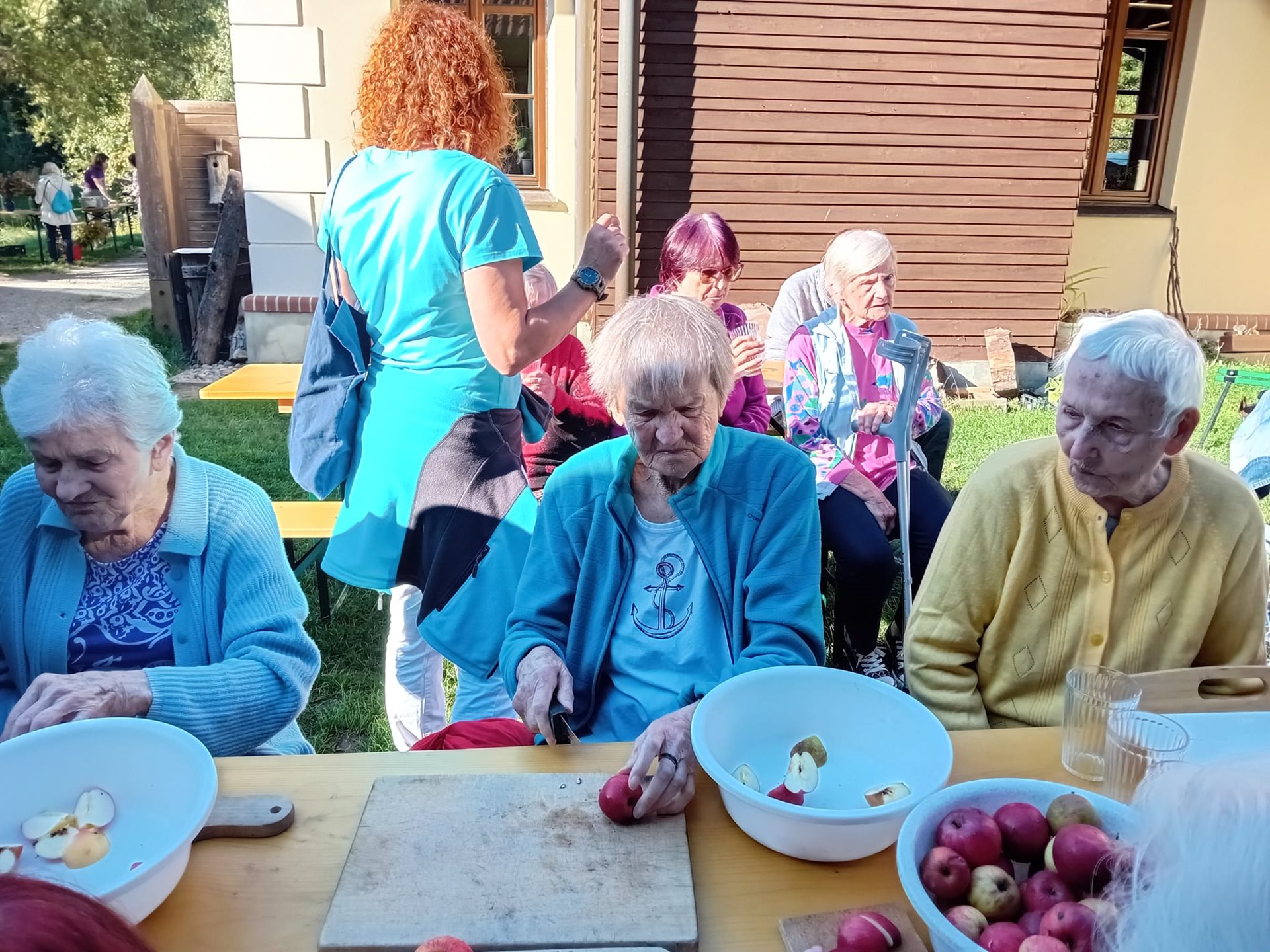 Strávili jsme krásné dopoledne plné zážitků. Klienti měli možnost zapojit se do moštování, navázat si kytku ze sušených a řezaných květin, připravit si koláčky, které se poté pekly v peci. Po upečení si je mohly dát ke kávě, která byla připravena. Velkým zážitkem byl houslový koncert v podání p. Damborské.