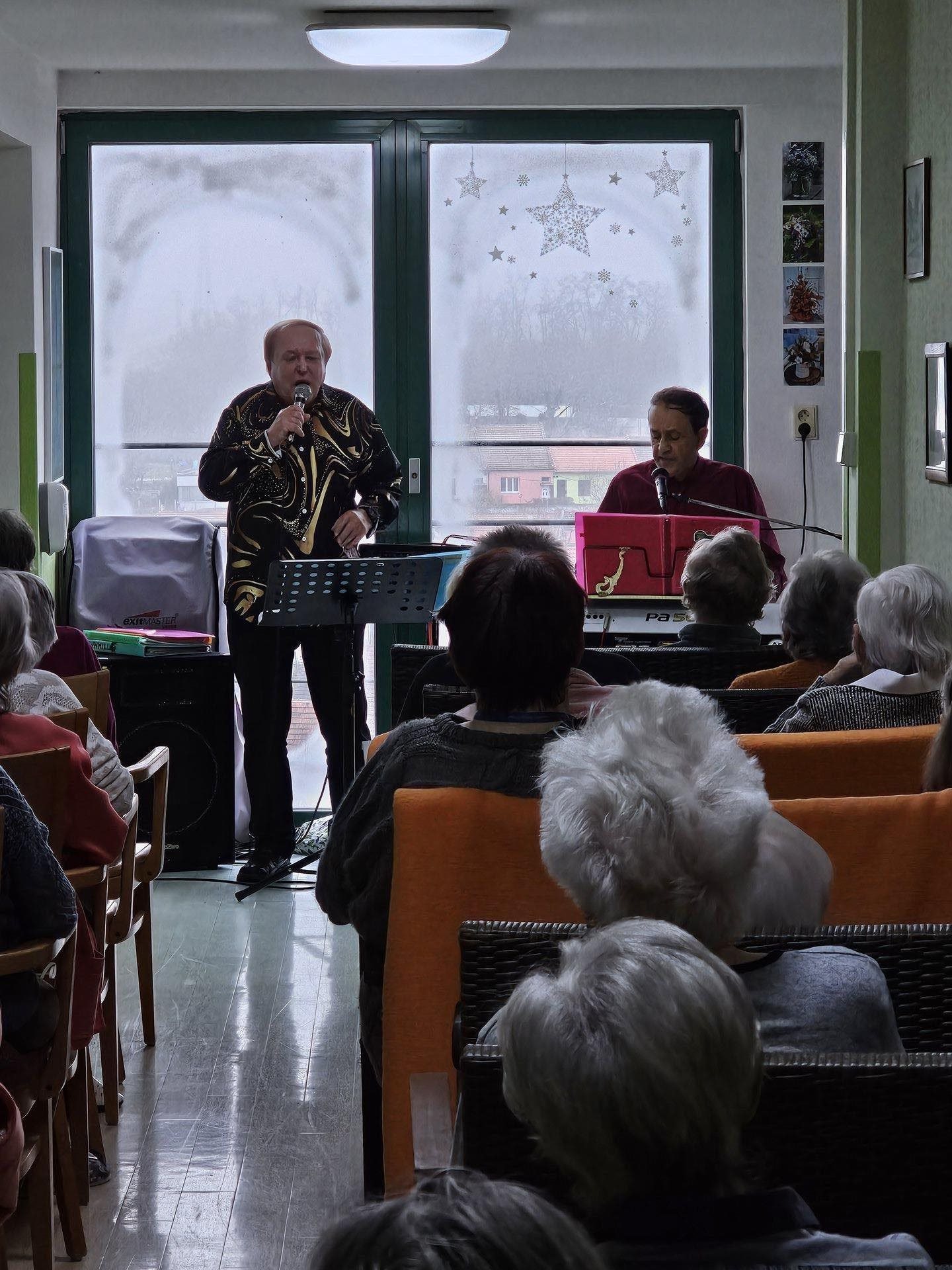 Dne 27.11.2024 nás navštívila skupina DUO HARMONY, která našim klientům zahrála známé melodie, u kterých si všichni s radostí zazpívali. Vzhledem k tomu, že se blíží první adventní neděle, zazněly i vánoční koledy.