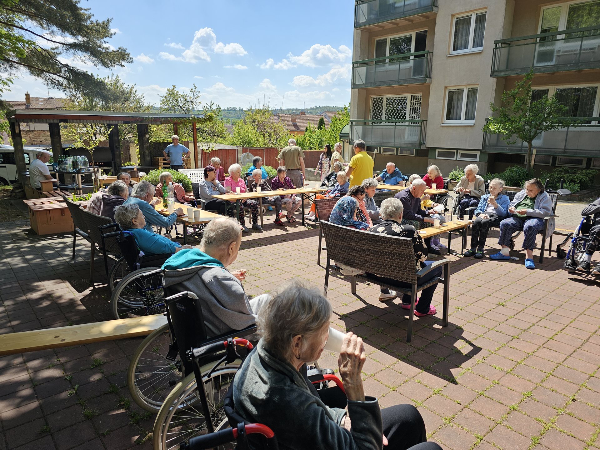 29.4.2025 jsme pro naše klienty připravili kulturní program. Nejen že jsme si připomněli Pálení čarodějnic, ale zahájili jsme také grilovací sezónu prvním opékání špekáčků. Toto odpoledne nám doplnila také paní Terezka hrou na harmoniku a krásným zpěvem-děkujeme. Počasí nám přálo a všichni jsme si to užili.