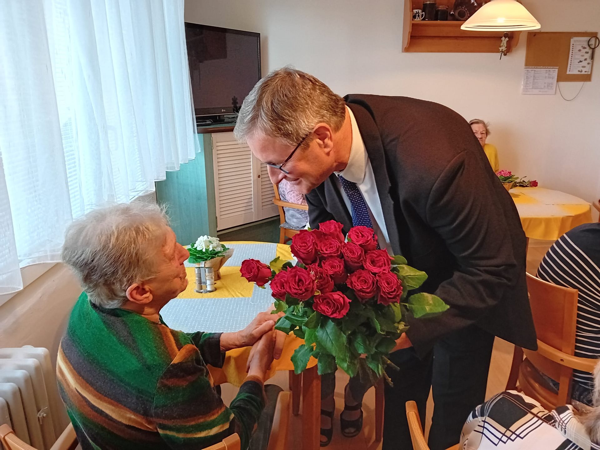 Dne 10.5.2024 nás navštívil místostarosta městské části Starý Lískovec, aby popřál našim klientkám ke dni Svátku matek a obdaroval je růžemi. Za tuto návštěvu děkujeme.
