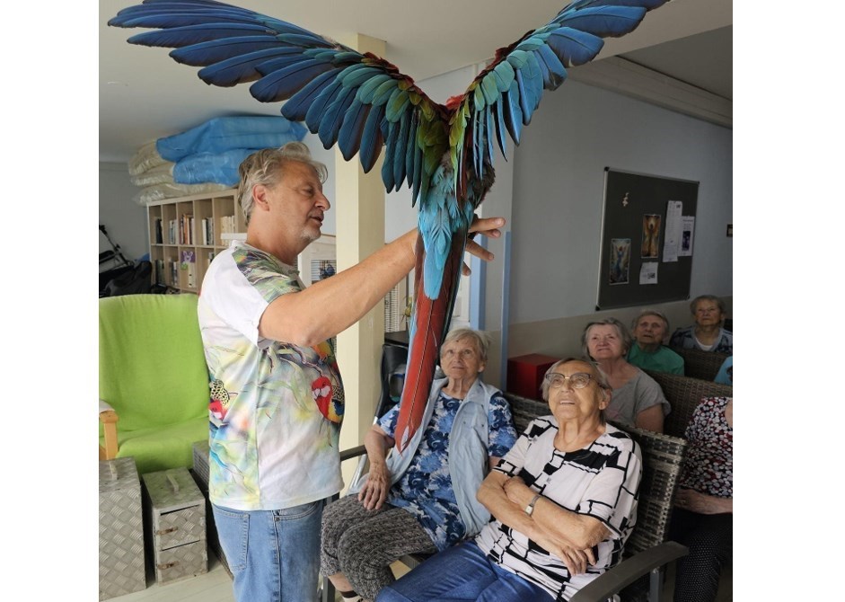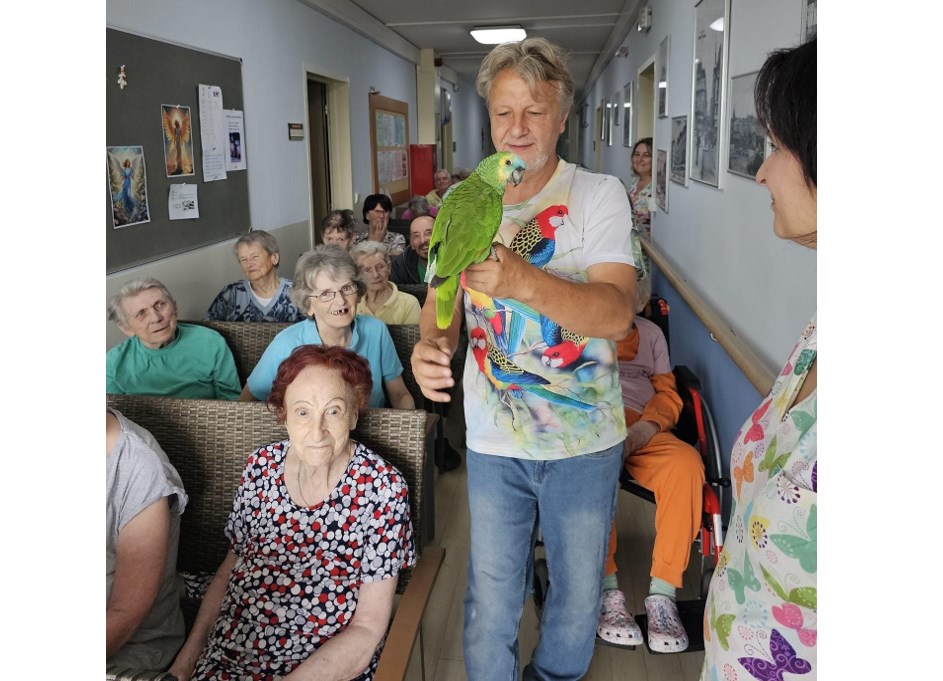 Dne 24.7.2025 jsme měli v našem domově přehlídku exotických papoušků. Byla to krásná podívaná. Dozvěděli jsme se spoustu informací z chovu těchto ptáků a dočkali jsme se také několik ukázek z jejich dovedností. Děkujeme a věříme, že jsme se neviděli naposledy.