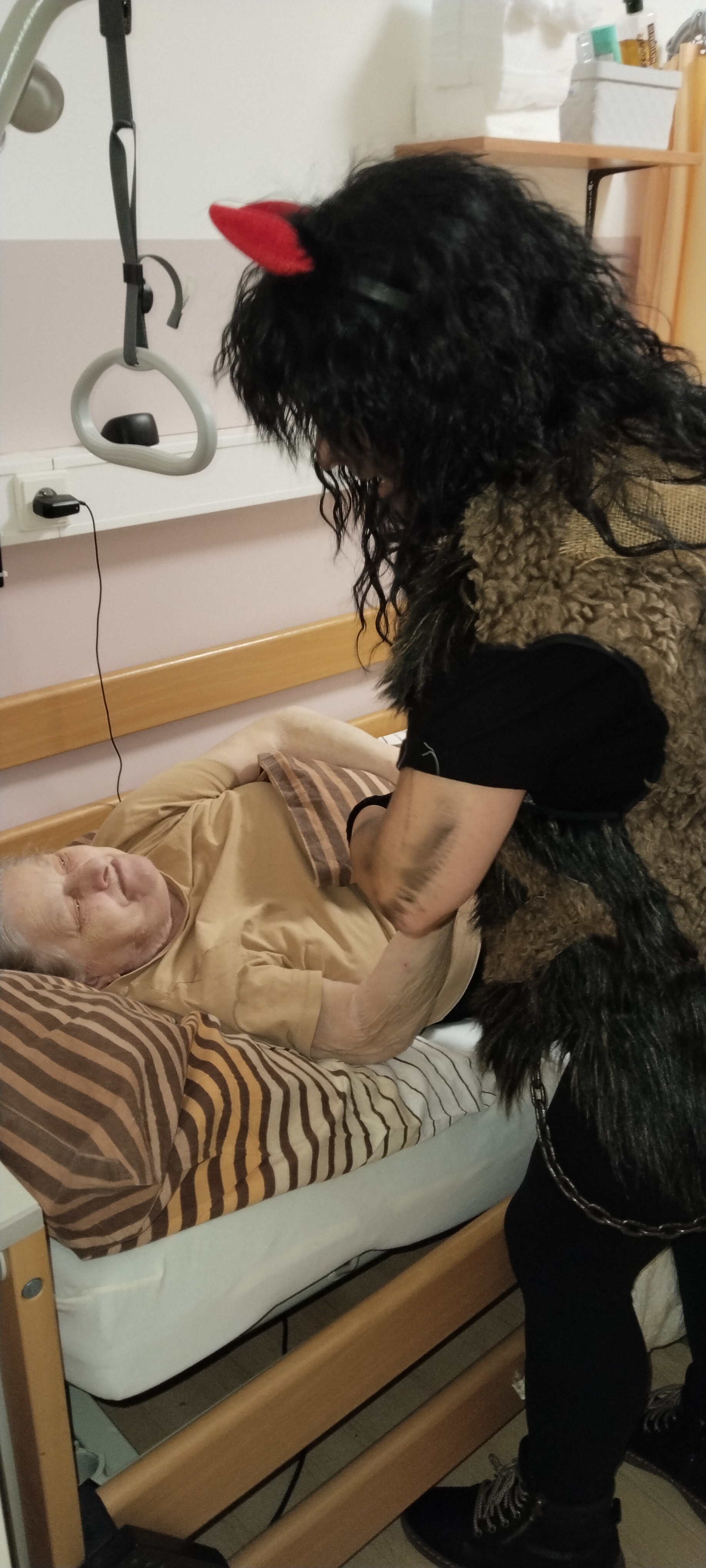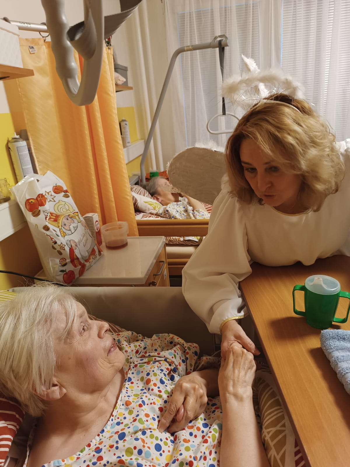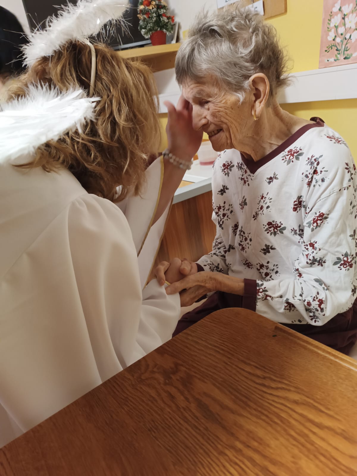 Jako každý rok náš Domov navštívil Mikuláš s andělem a čertem. Pro všechny klienty měli připravené balíčky. S klienty si popovídali, zažertovali a poté předali mikulášskou nadílku.