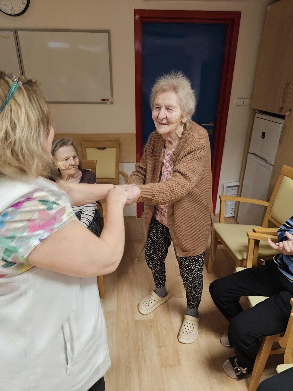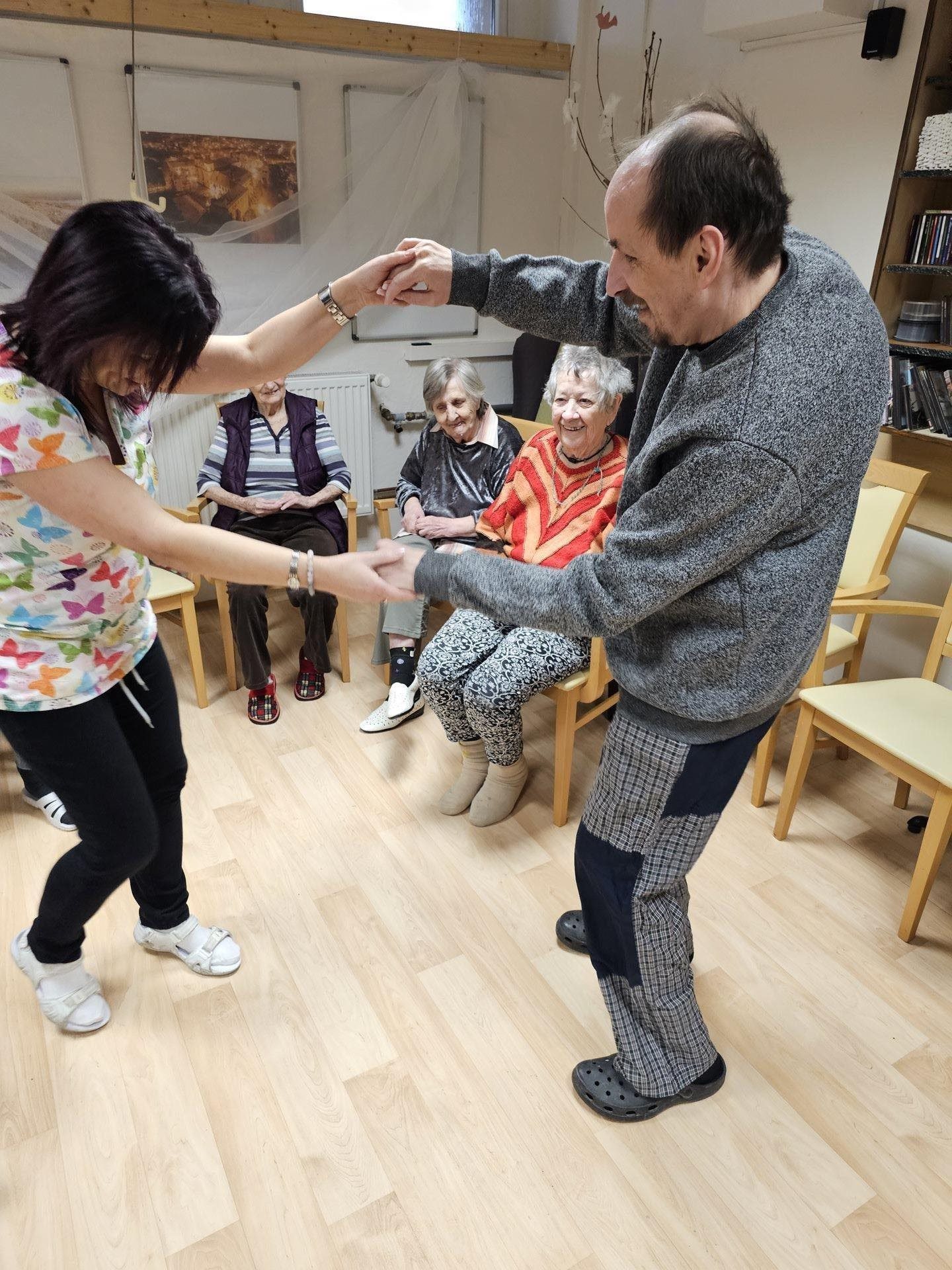 Dnes jsme si společně s klienty užili dnešní dopoledne při tanci, zpěvu a povídání.
